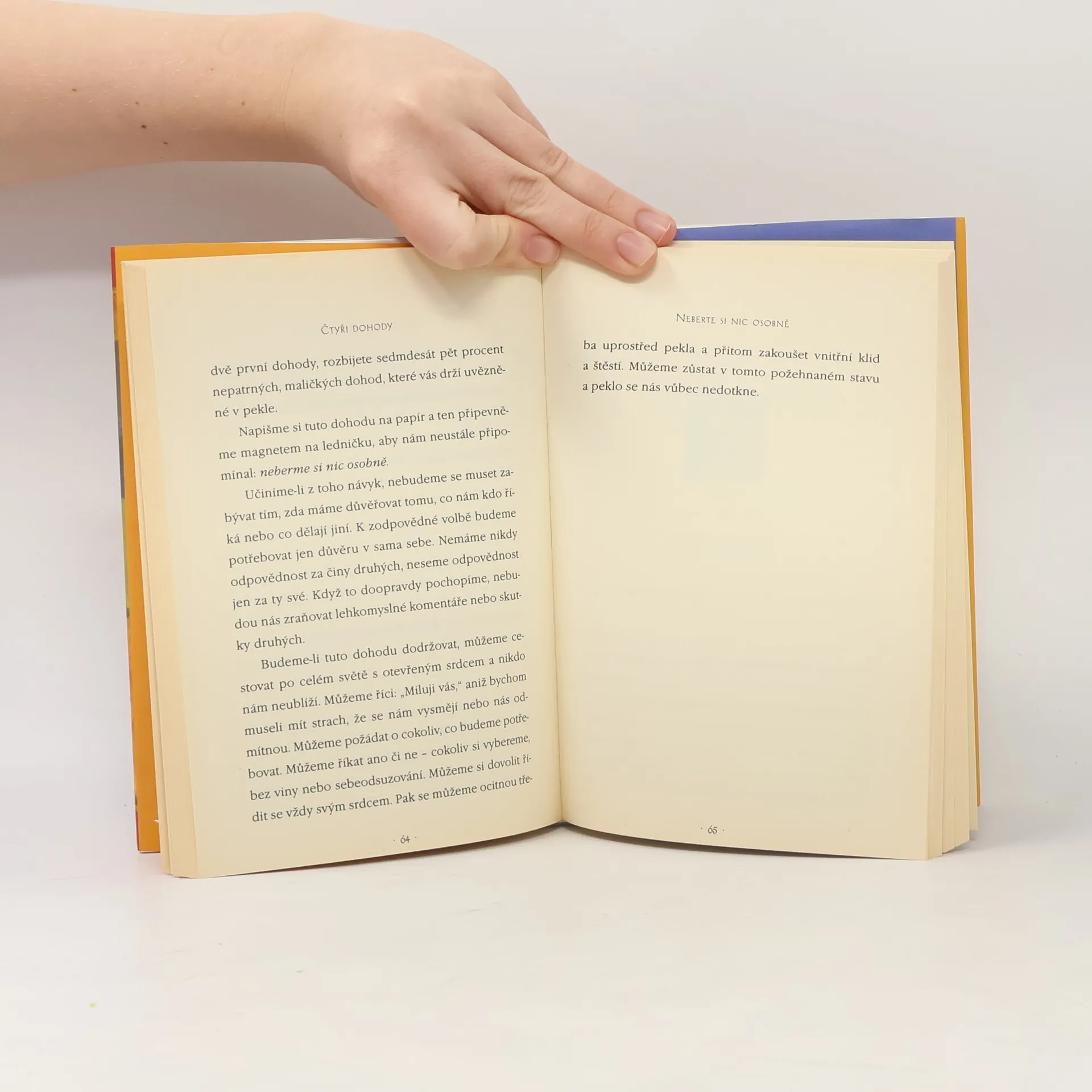 Praktický průvodce osobní svobodou. Ve Čtyřech dohodách odhaluje don Miguel Ruiz zdroj omezujících názorů, které nás připravují o radost a vedou k zbytečnému utrpení. Čtyři dohody, založené na staré toltécké moudrosti, nabízejí silný kód chování, který dokáže rychle proměnit náš život v nový prožitek svobody, opravdového štěstí a lásky.