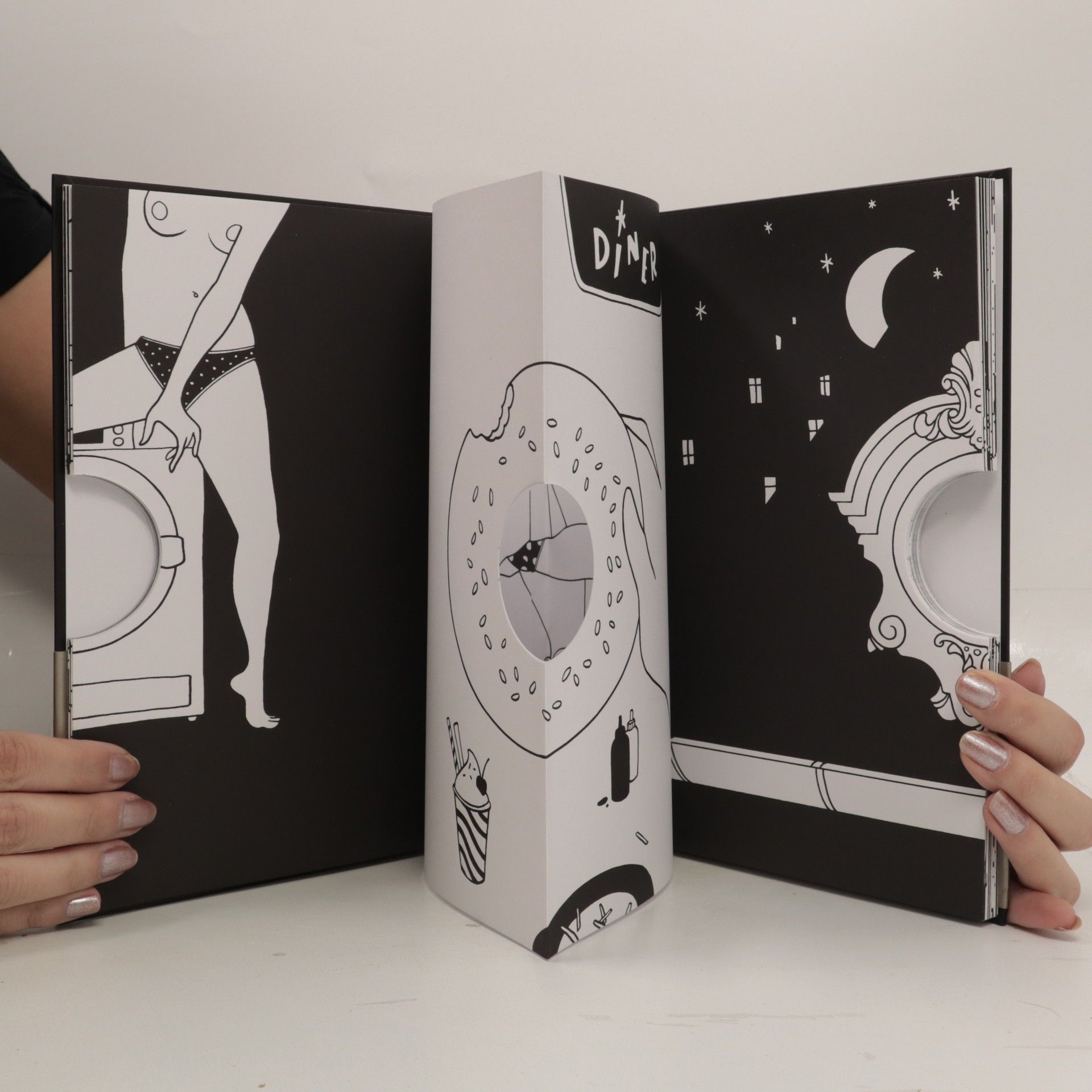 Simon Frankart, l’auteur-dessinateur du projet Petites Luxures suivi par plus d’un million d’abonnés, a imaginé ce livre-objet. Il y présente 25 scènes à regarder par un petit œilleton découpé au centre des pages qui dévoile un second plan fripon, à l’image des dessins à l’encre qui ont fait son succès.
