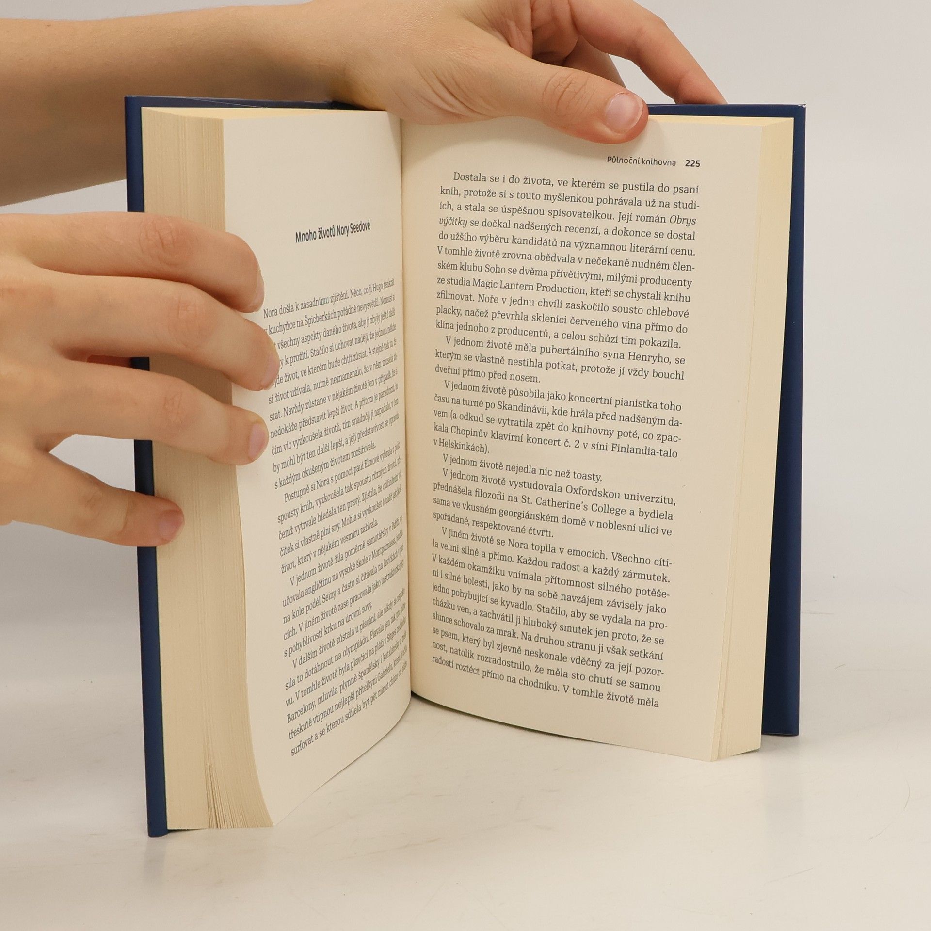 Mezi životem a smrtí stojí knihovna. Když se Nora Seedová ocitne v půlnoční knihovně, má možnost všechno napravit. Dosud byl její život jen přehlídkou zoufalství a výčitek. Připadá jí, že všechny včetně sebe zklamala. To se ale může co nevidět změnit. Knihy v půlnoční knihovně umožní Noře zažít, co by se stalo, kdyby mohla změnit svá dřívější rozhodnutí. S pomocí staré známé může Nora odčinit vše, čeho lituje, a zjistit přitom, který život je pro ni ten pravý. Ale vše není tak, jak si to představovala, a brzy ji její rozhodnutí uvrhnou i s celou knihovnou do velkého nebezpečí. Než jí vyprší čas, musí najít odpověď na odvěkou otázku: jaký je nejlepší způsob života?