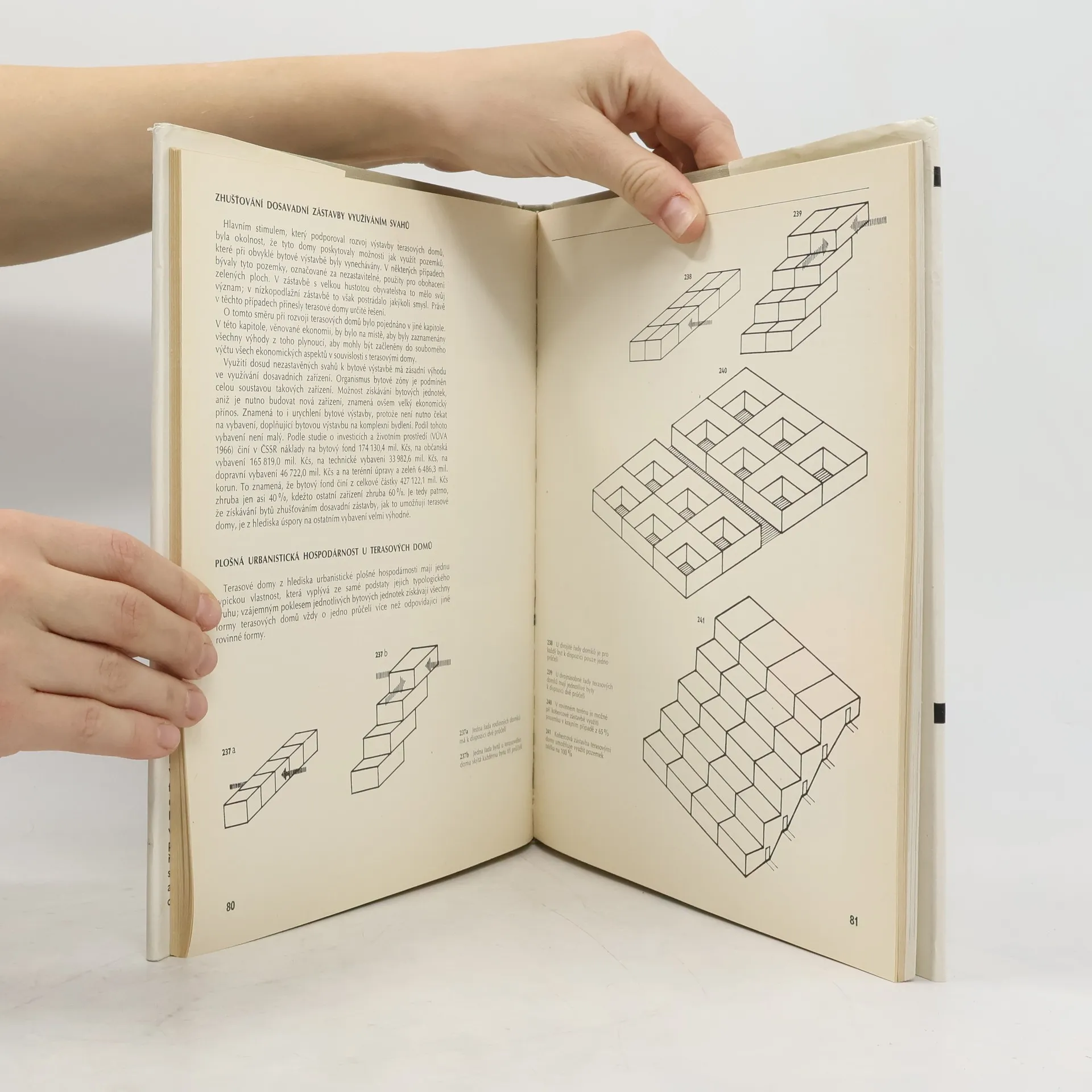 Četné ukázky vnějšího i vnitřního řešení doplňují publikaci, která shrnuje dosavadní zkušenosti z výstavby terasových domů. Autor se v ní zabývá terasovými domy z urbanistického hlediska, podmínkami pro jejich rozšíření a podává typologický rozbor terasového domu. Všímá si dispozice a půdorysu bytů, vnitřního vybavení domů a probírá stavbu těchto typů domů z ekonomického hlediska.