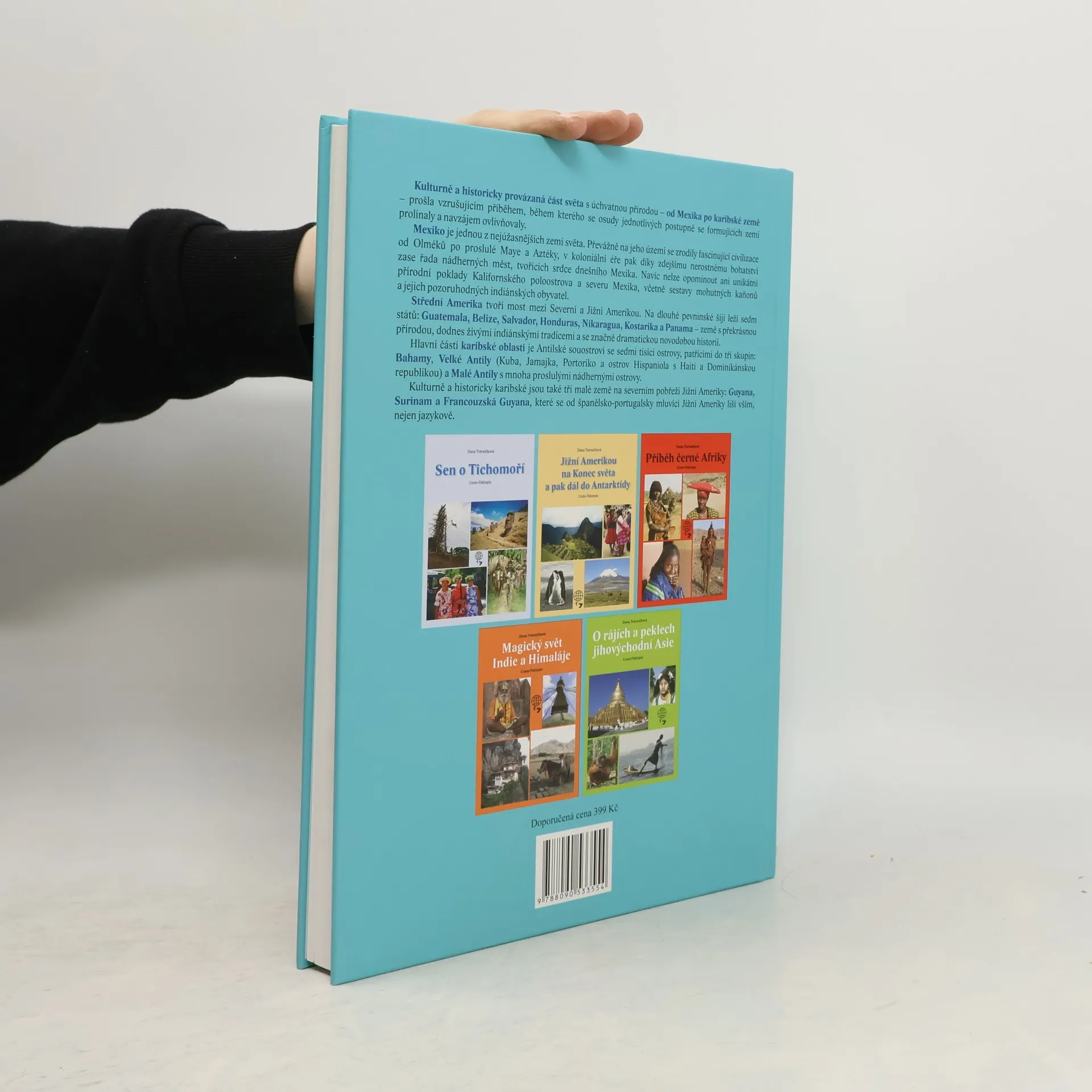 Od Mexika po karibské země leží nádherná kulturně a historicky provázaná část světa, která dodnes prožívá vzrušující příběh, v němž se osudy jednotlivých zemí prolínají a navzájem ovlivňují. Na území Mexika se zrodily fascinující vyspělé civilizace od Olméků až po Maye a Aztéky, ale nejen ony jsou mexickým pokladem. Jsou jimi i koloniální města, tvořící srdce dnešního Mexika, či unikátní přírodní a civilizační poklady Kalifornského poloostrova a severu Mexika. Sedm států: Guatemala, Belize, Salvador, Honduras, Nikaragua, Kostarika a Panama na pevninské šíji Střední Ameriky jsou země s překrásnou přírodou, dodnes živými indiánskými tradicemi a hodně dramatickou novodobou historií. Také v případě karibské oblasti je o čem vyprávět! Jak o ostrovních zemích Antilského souostroví se sedmi tisíci ostrovy (Bahamy, Velké Antily a Malé Antily), tak o třech malých zemích na severním pobřeží Jižní Ameriky (Guyana, Surinam a Francouzská Guyana), charakterem karibskými.