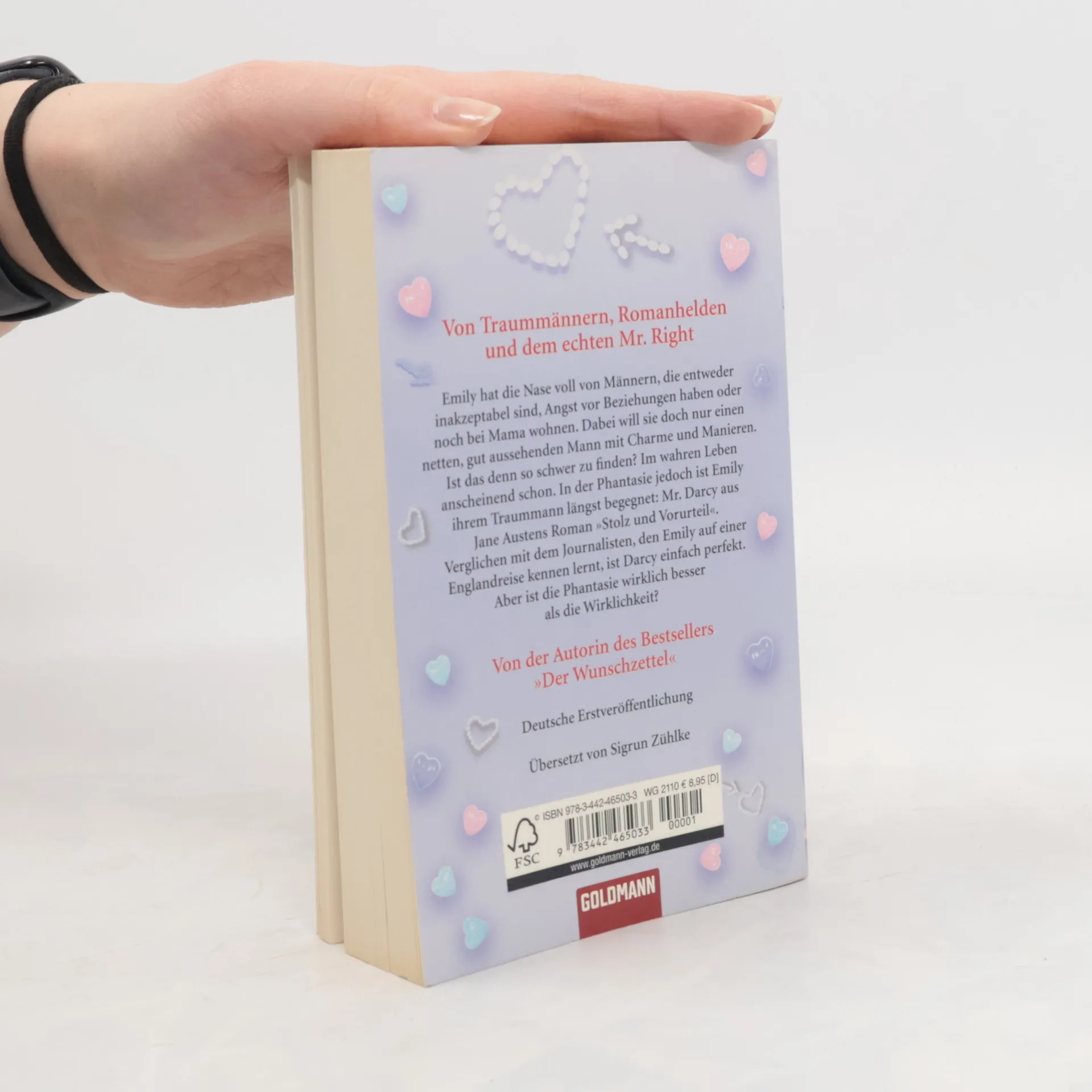 Ein Roman über Traummänner, Romanhelden und den echten Mr. RightEmily hat die Nase voll von Männern, die entweder inakzeptabel sind, Angst vor Beziehungen haben oder noch bei Mama wohnen. Dabei will sie doch nur einen netten, gut aussehenden Mann mit Charme und Manieren. Ist das denn so schwer zu finden? Im wahren Leben anscheinend schon. In der Phantasie jedoch hat Emily ihren Traummann längst gefunden: Mr. Darcy aus Jane Austens Roman „Stolz und Vorurteil“. Verglichen mit dem Journalisten, den Emily auf einer Englandreise kennen lernt, ist Darcy einfach perfekt. Aber ist die Phantasie wirklich besser als die Wirklichkeit? Herrlich komisch und voller Gefühl: eine zauberhafte romantische Komödie!