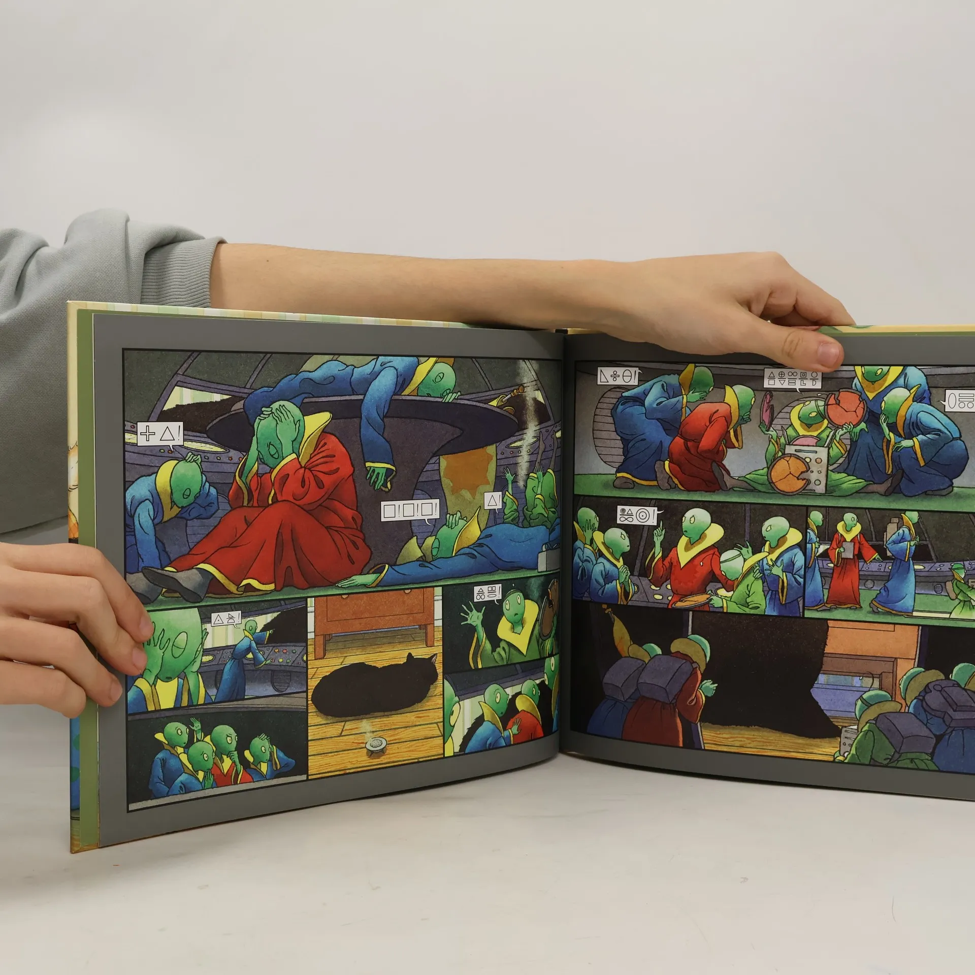 Gewinner des Deutschen Jugendliteraturpreises 2015 in der Kategorie Bilderbuch!§§Herr Schnuffels ist ein ziemlich gelangweilter Kater. Bis sich eines Tages ein winziges Raumschiff samt außerirdischer Besatzung in die Wohnung verirrt. Kaum auf der Erde gelandet, müssen die kleinen grünen Männchen schon um ihr Leben fürchten, denn eine schreckliche schwarz-weiße Bestie macht Jagd auf sie. Zum Glück finden sie hinter der Heizung kleine krabbelige Verbündete, mit denen sie einen Fluchtplan schmieden. Ob sie es schaffen, Herrn Schnuffels auszutricksen und auf ihren Heimatplaneten zurückzukehren?