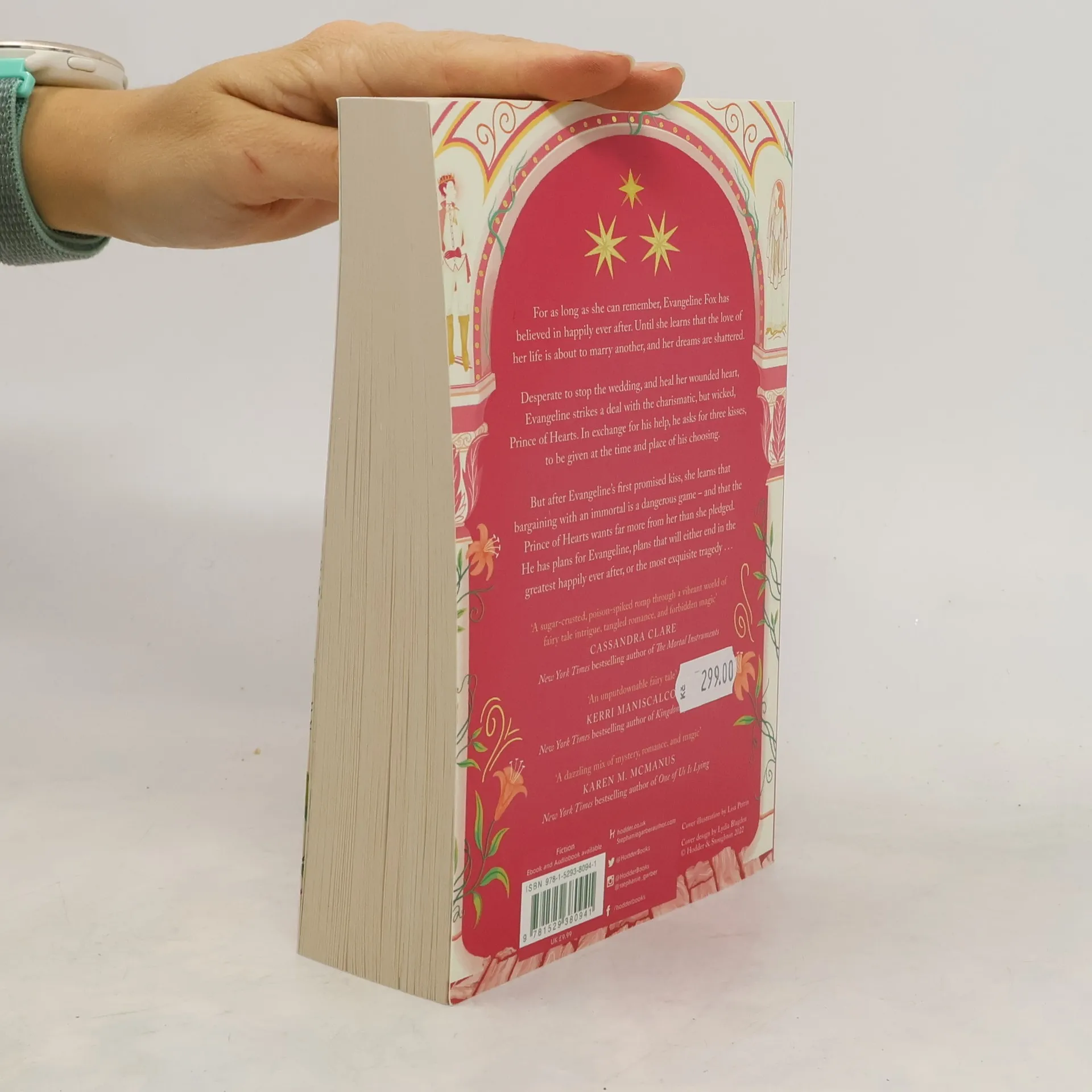 ONCE UPON A BROKEN HEART marks the launch of a new series from Stephanie Garber about love, curses, and the lengths that people will go to for happily ever after For as long as she can remember, Evangeline Fox has believed in true love and happy endings . . . until she learns that the love of her life will marry another. Desperate to stop the wedding and to heal her wounded heart, Evangeline strikes a deal with the charismatic, but wicked, Prince of Hearts. In exchange for his help, he asks for three kisses, to be given at the time and place of his choosing. But after Evangeline’s first promised kiss, she learns that bargaining with an immortal is a dangerous game — and that the Prince of Hearts wants far more from her than she’d pledged. He has plans for Evangeline, plans that will either end in the greatest happily ever after, or the most exquisite tragedy.