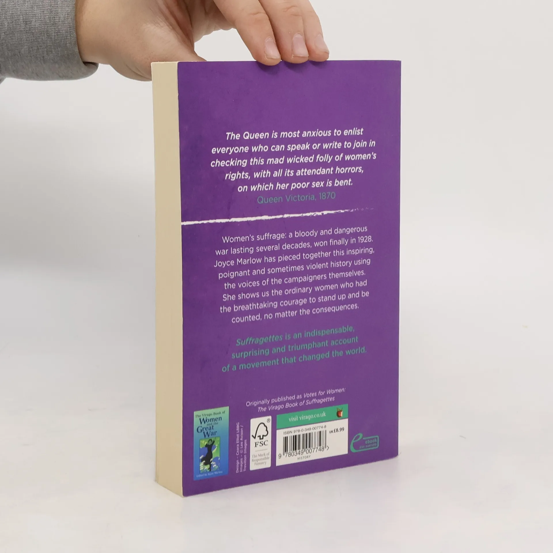 Queen Victoria is most anxious to enlist everyone who can speak or write to join in checking this mad wicked folly of women's rights, with all its attendant horrors, on which her poor sex is bent' - 1870 It was a bloody and dangerous war lasting several decades, won finally by sheer will and determination in 1928. Drawing on extracts from diaries, newspapers, letters, journals and books, Joyce Marlow has pieced together this inspiring, poignant and exciting history using the voices of the women themselves. Some of the people and events are well-known, but Marlow has gone beyond the obvious, particularly beyond London, to show us the ordinary women - middle and working-class, who had the breathtaking courage to stand up and be counted - or just as likely hectored, or pelted with eggs. These women were clever and determined, knew the power of humour and surprise and exhibited 'unladylike' passion and bravery. Joyce Marlow's anthology is lively, comprehensive, surprising and triumphant.