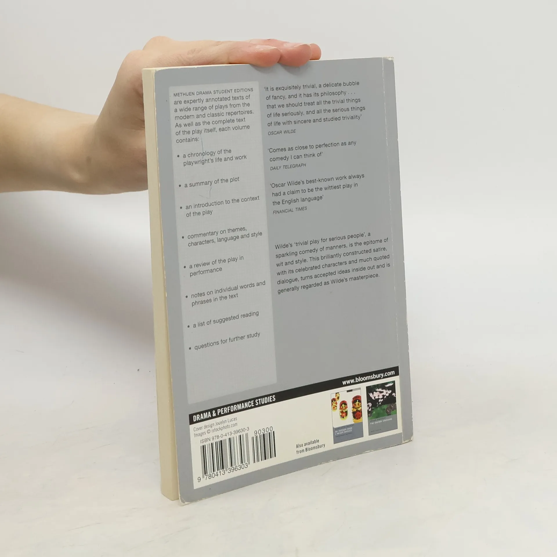Wilde's "trivial play for serious people" is a sparkling comedy of manners. This hilariously absurd satire pits sincerity against style, barbed witticisms against ostentatious elegance. Wilde's brilliantly constructed plot and famous dialogue enrich the appeal of his celebrated characters, as he turns accepted ideas inside out and situations upside down in this, his masterpiece. The Student Edition offers a plot summary, full commentary, character notes and questions for study, besides a chronology and bibliography.