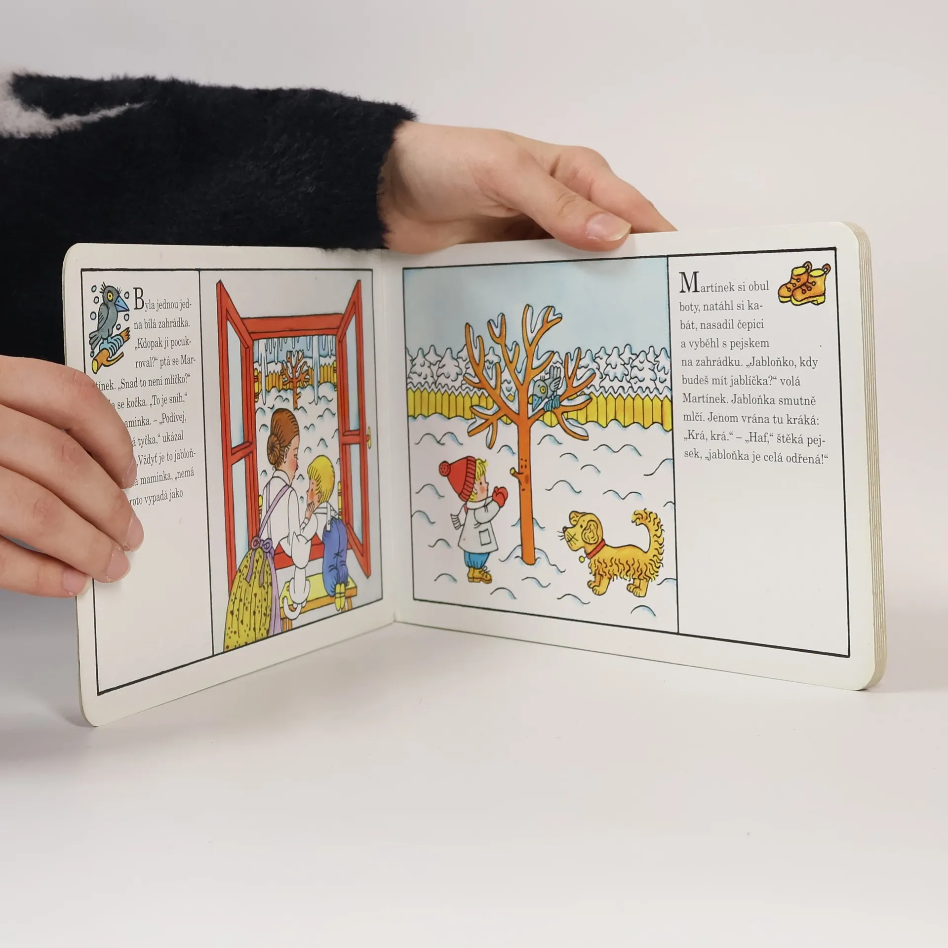 Obrázkové leporelo pro nejmenší děti o Martínkovi, který s maminkou a tatínkem pečuje o jabloňku.
