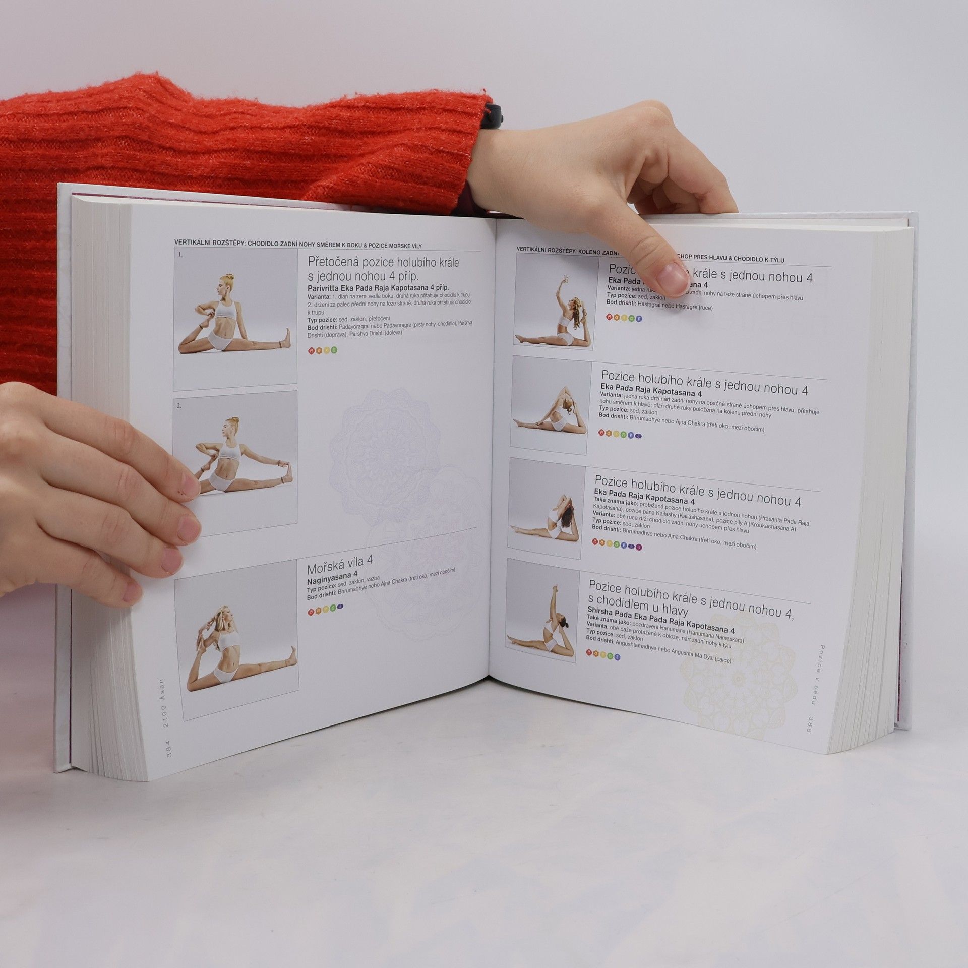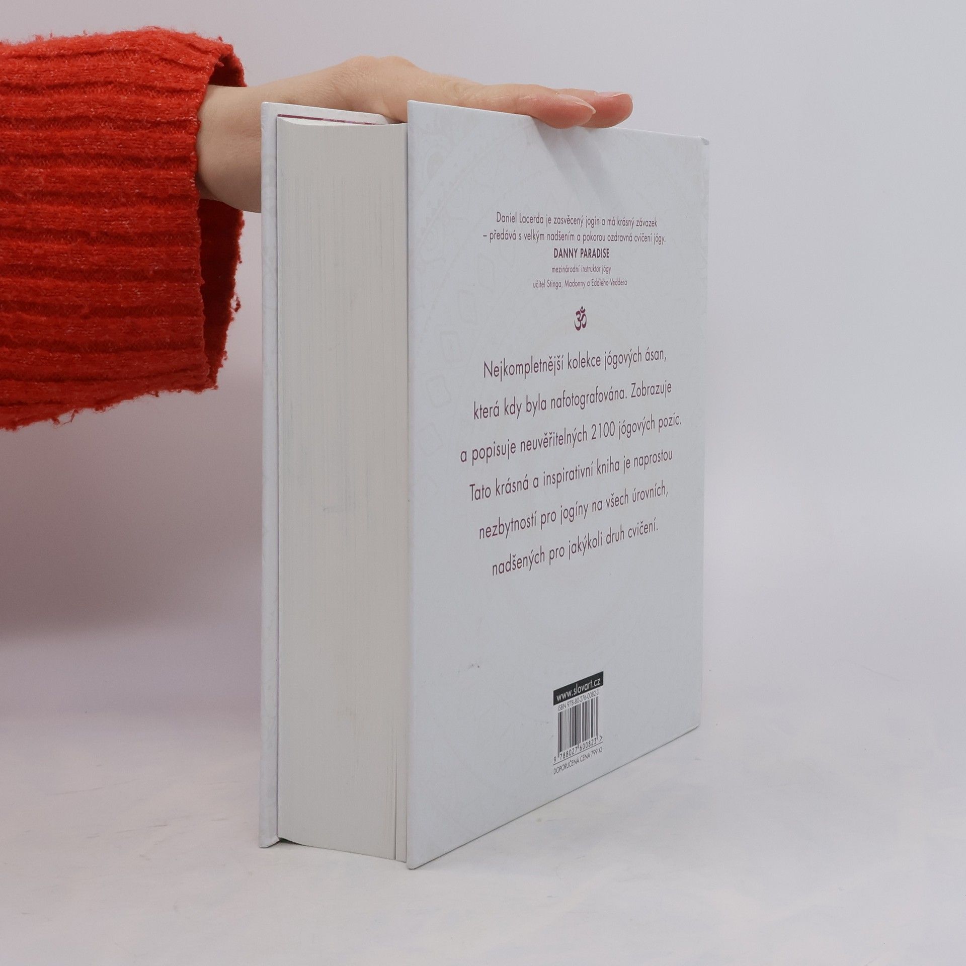 2100 ásan je nebývalá kolekce jógových pozic, stejně tak i umělecké dílo zobrazující krásu a vypracovanost lidského těla při cvičení jógy. Každá z inspirujících fotografií představuje zkušeného jogína v pozici dovedené k dokonalosti. Pozice jsou rozděleny do devíti hlavních kategorií - stojné pozice, pozice v sedě, pozice zaměřené na střed těla, pozice na čtyřech, záklony, balance na pažích, obrácené pozice, pozice na břiše, pozice na zádech - a dále seřazeny do skupin ásan, které obvykle postupují od nejsnažšího provedení k náročnějším variantám. Každá z fotografií je opatřena názvem pozice v češtině a v sanskrtu, alternativními názvy pozice, pokud existují, a popisem různých variant každé pozice, bodu drišti (místo, kam by měla směřovat pozornost) a čakrami, které pozice ovlivňuje. Tvůrcem i fotografem této úžasné kolekce je odborný lektor jógy Daniel Lacerda. Individuálně trénoval a vybral víc než 40 zkušených modelek a modelů ze svého týmu. V úvodu ke knize předkládá podstatné informace, stěžejní pro všechna jogová cvičení, včetně základní historie jógy, úvodu do jógových súter, významu dechu udžají a jak ho používat, vysvětlení pojmů bandha, drišti a čakra, jak meditovat a relaxovat a blahodárné pozice (i varování) týkající se osmi stavů, jako například astma, těhotenství či vysoký krevní tlak. Tato kniha je dokonalým doplňkem cvičení i životního stylu dnešního moderního jogína.