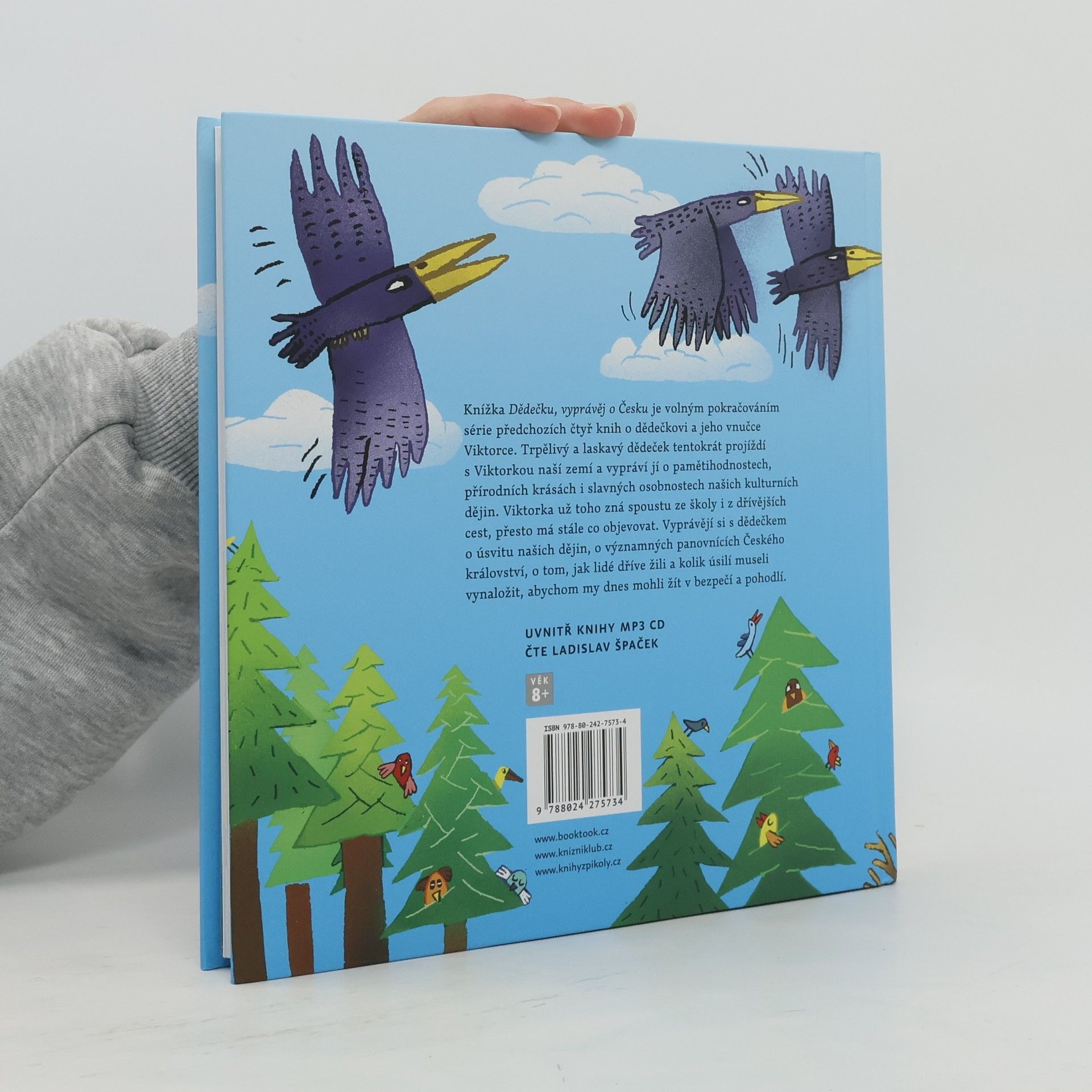 Knížka Dědečku, vyprávěj o Česku je volným pokračováním série předchozích čtyř knih o dědečkovi a jeho vnučce Viktorce. Trpělivý a laskavý dědeček tentokrát projíždí s Viktorkou naší zemí a vypráví jí o pamětihodnostech, přírodních krásách i slavných osobnostech našich kulturních dějin. Viktorka už zná leccos ze školy i z dřívějších cest, přesto má stále co objevovat. Vyprávějí si s dědečkem o úsvitu našich dějin, o významných panovnících Českého království, o tom, jak lidé dříve žili a kolik úsilí museli vynaložit, abychom my dnes mohli žít v bezpečí a pohodlí.