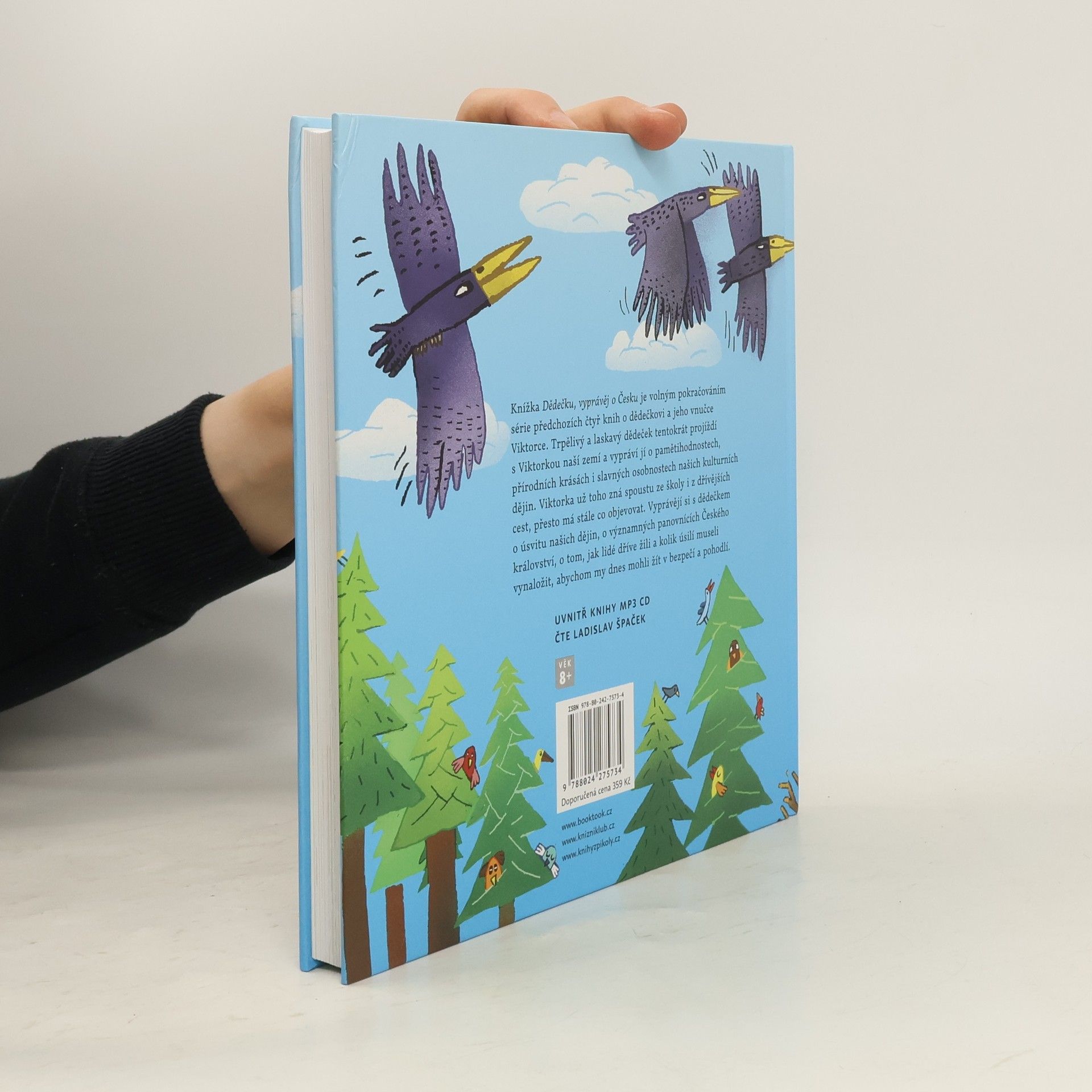 Knížka Dědečku, vyprávěj o Česku je volným pokračováním série předchozích čtyř knih o dědečkovi a jeho vnučce Viktorce. Trpělivý a laskavý dědeček tentokrát projíždí s Viktorkou naší zemí a vypráví jí o pamětihodnostech, přírodních krásách i slavných osobnostech našich kulturních dějin. Viktorka už zná leccos ze školy i z dřívějších cest, přesto má stále co objevovat. Vyprávějí si s dědečkem o úsvitu našich dějin, o významných panovnících Českého království, o tom, jak lidé dříve žili a kolik úsilí museli vynaložit, abychom my dnes mohli žít v bezpečí a pohodlí.