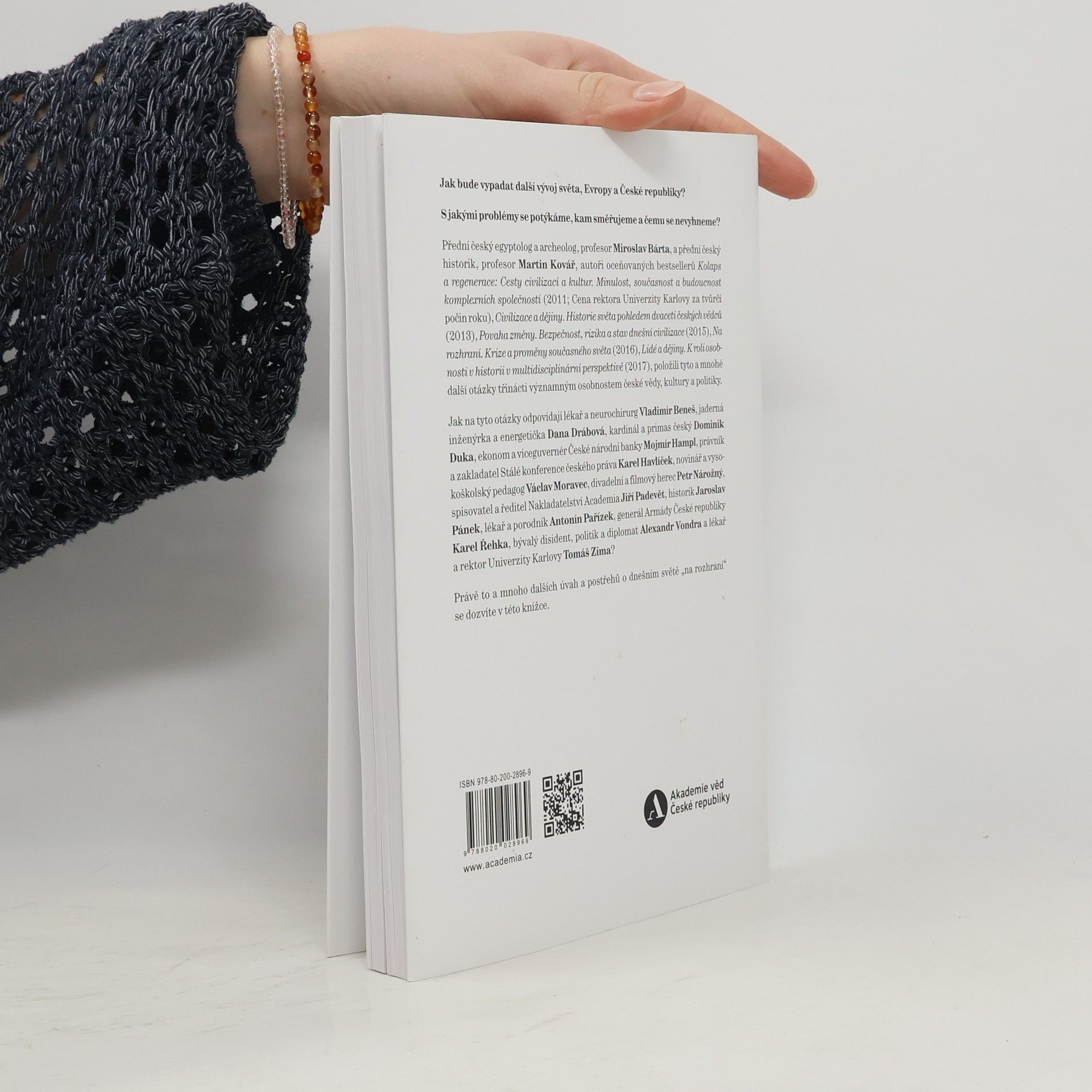 Jak bude vypadat další vývoj světa, Evropy a České republiky? S jakými problémy se potýkáme, kam směřujeme a čemu se nevyhneme? Přední český egyptolog a archeolog, profesor Miroslav Bárta, a přední český historik, profesor Martin Kovář, položili tyto a mnohé další otázky třinácti významným osobnostem české vědy, kultury a politiky. Jak na tyto otázky odpovídají lékař a neurochirurg Vladimír Beneš, jaderná inženýrka a energetička Dana Drábová, kardinál a primas český Dominik Duka, ekonom a viceguvernér České národní banky Mojmír Hampl, právník a zakladatel Stálé konference českého práva Karel Havlíček, novinář a vyso¬koškolský pedagog Václav Moravec, divadelní a filmový herec Petr Nárožný, spisovatel a ředitel Nakladatelství Academia Jiří Padevět, historik Jaroslav Pánek, lékař a porodník Antonín Pařízek, generál Armády České republiky Karel Řehka, bývalý disident, politik a diplomat Alexandr Vondra a lékař a rektor Univerzity Karlovy Tomáš Zima? Právě to a mnoho dalších úvah a postřehů o dnešním světě „na rozhraní“ se dozvíte v této knížce.