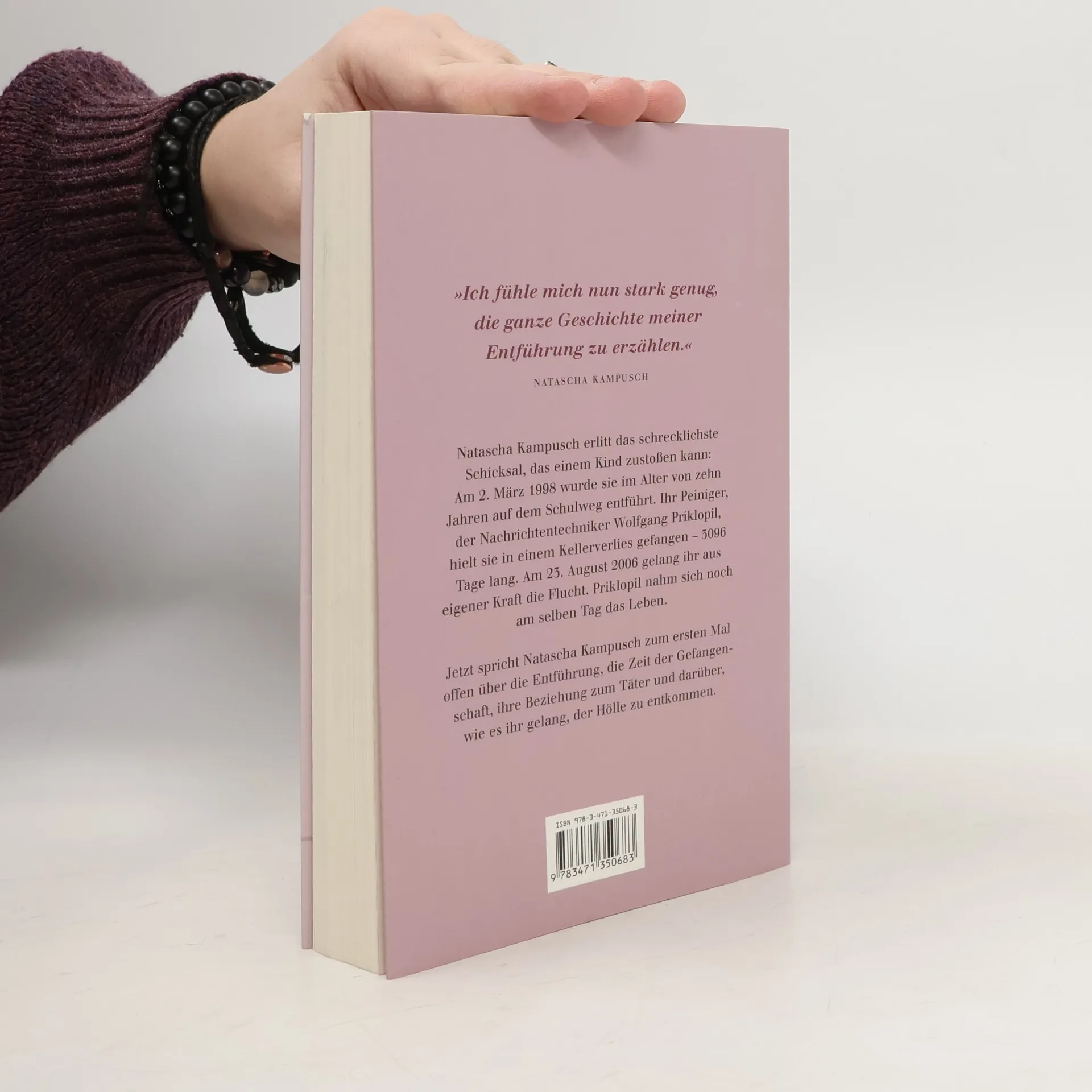 Natascha Kampusch erlitt das schrecklichste Schicksal, das einem Kind zustoßen kann: Am 2. März 1998 wurde sie im Alter von zehn Jahren auf dem Schulweg entführt. Ihr Peiniger, der Nachrichtentechniker Wolfgang Priklopil, hielt sie in einem Kellerverlies gefangen - 3096 Tage lang. Am 23. August 2006 gelang ihr aus eigener Kraft die Flucht. Priklopil nahm sich noch am selben Tag das Leben. Jetzt spricht Natascha Kampusch zm ersten Mal offen über ihre Entführung, die Zeit der Gefangenschaft, ihre Beziehung zum Täter und darüber, wie es ihr gelang, der Hölle zu entkommen.