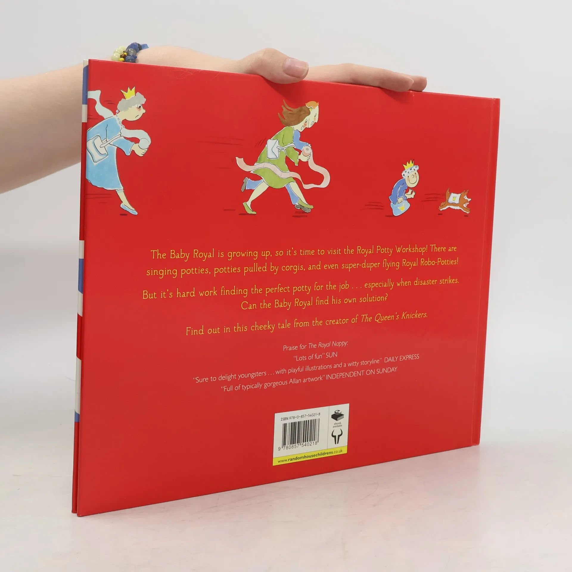 It's time for the prince to use his potty, so it's off to the Royal Potty Workshop! There are singing potties, potties pulled by corgis, and even super-duper flying Royal Robo-Potties! But it's hard work finding the perfect potty for the job ... especially when disaster strikes. Can the Royal Baby find his own solution? From the bestselling creator of The Queen's Knickers comes a jolly escapade through the world of potties, royalty and tiny accidents!