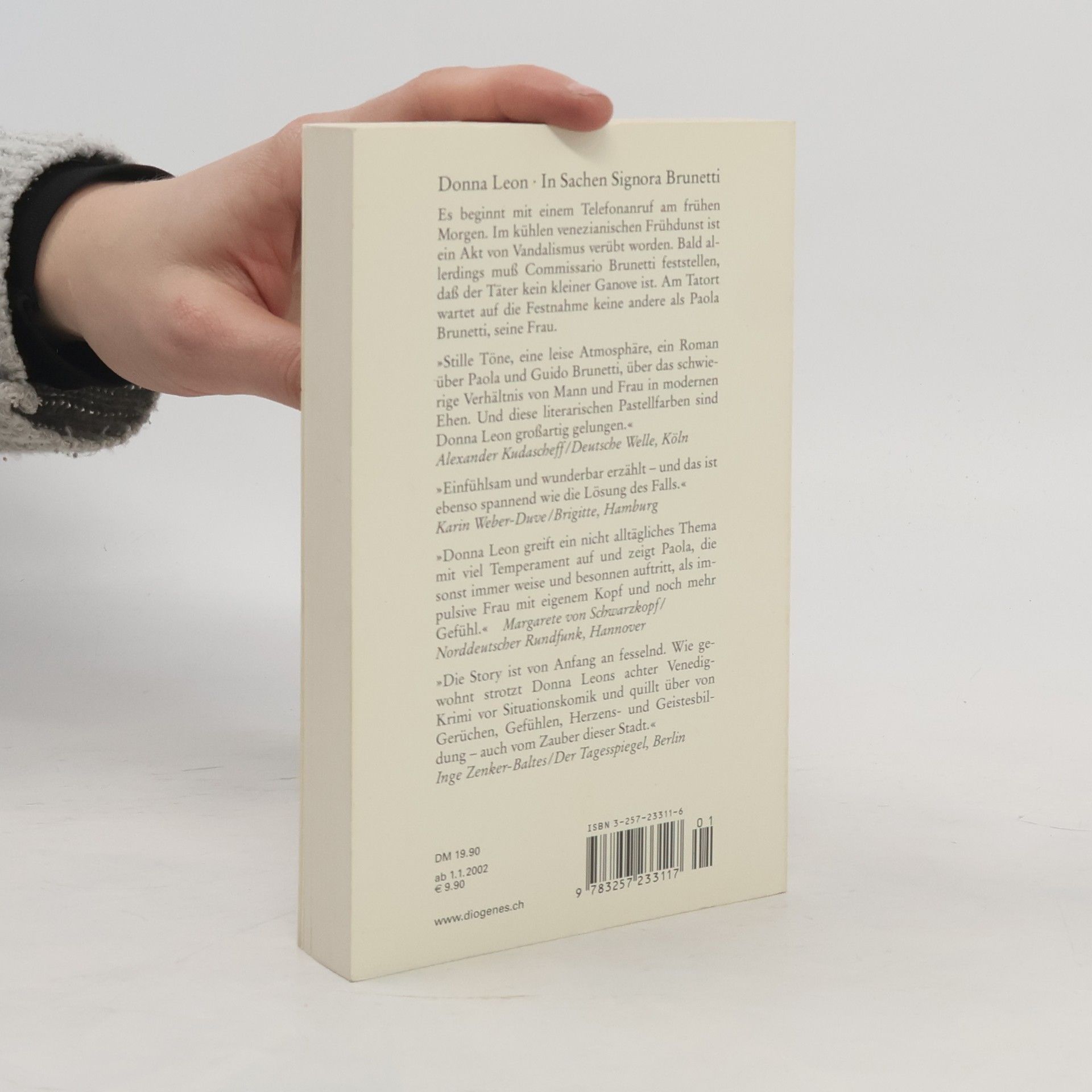 Es beginnt mit einem Telefonanruf am frühen Morgen. Im kühlen venezianischen Frühdunst ist ein Akt von Vandalismus verübt worden. Bald allerdings muß Commissario Brunetti feststellen, dass der Täter kein kleiner Ganove ist. Am Tatort wartet auf die Festnahme keine andere als Paola Brunetti, seine Frau.