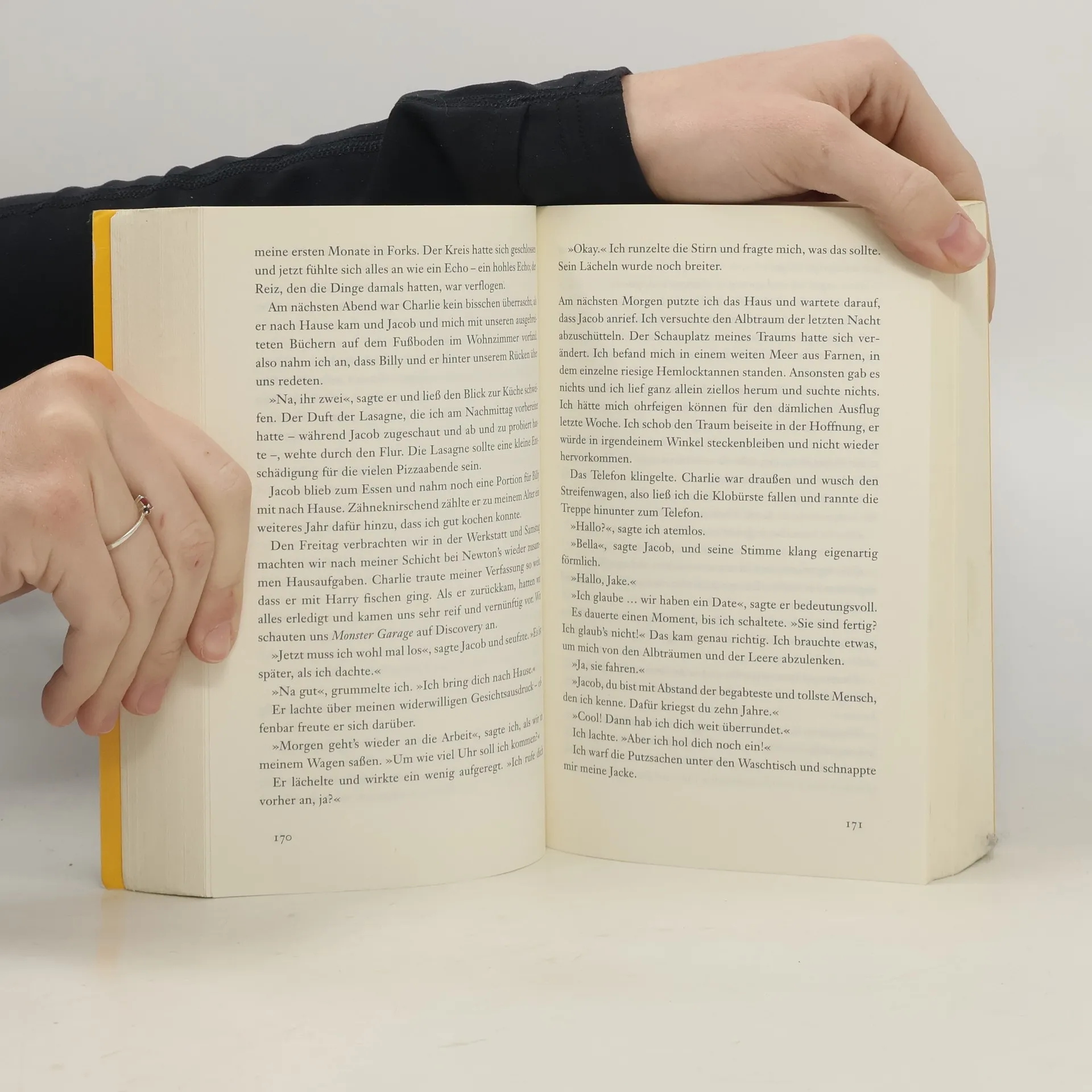 Für immer mit Edward zusammen zu sein - Bellas Traum scheint wahr geworden! Kurz nach ihrem 18. Geburtstag findet er jedoch ein jähes Ende, als ein kleiner, aber blutiger Zwischenfall ihr fast zum Verhängnis wird. Edward hat keine andere Wahl: Er muss sie verlassen. Für immer. Bella zerbricht beinahe daran, einzig die Freundschaft zu Jacob gibt ihr die Kraft weiterzuleben. Da erfährt Bella, dass Edward in höchster Gefahr schwebt. Und sein Schicksal liegt in ihren Händen. Sie muss zu ihm, rechtzeitig, bis zur Mittagsstunde ...