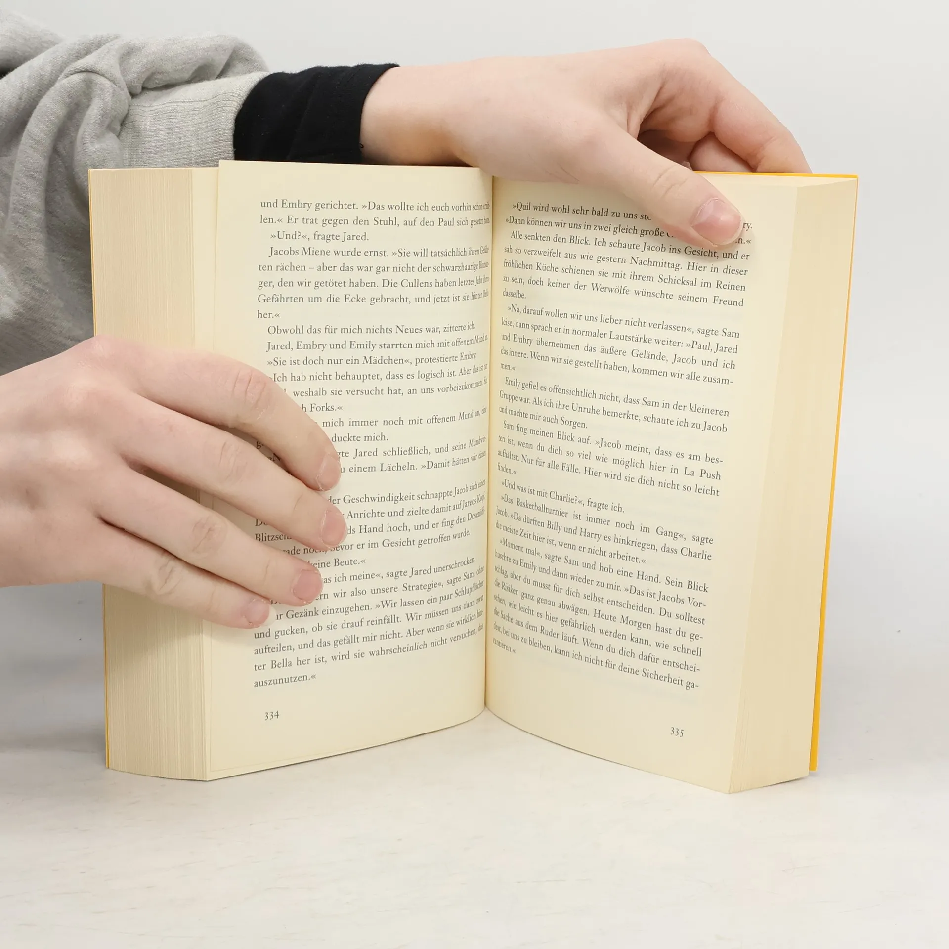 Für immer mit Edward zusammen zu sein - Bellas Traum scheint wahr geworden! Kurz nach ihrem 18. Geburtstag findet er jedoch ein jähes Ende, als ein kleiner, aber blutiger Zwischenfall ihr fast zum Verhängnis wird. Edward hat keine andere Wahl: Er muss sie verlassen. Für immer. Bella zerbricht beinahe daran, einzig die Freundschaft zu Jacob gibt ihr die Kraft weiterzuleben. Da erfährt Bella, dass Edward in höchster Gefahr schwebt. Und sein Schicksal liegt in ihren Händen. Sie muss zu ihm, rechtzeitig, bis zur Mittagsstunde ...