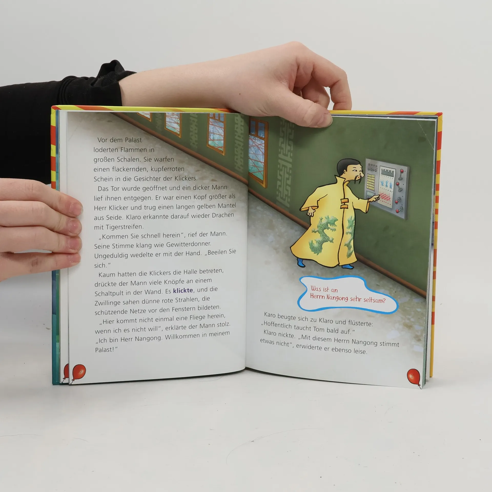 Klaus Klicker erhält von dem geheimnisvollen Herrn Nangong einen noch geheimnisvolleren Auftrag, er darf mit niemandem darüber reden. Die ganze Familie ist jedoch auf das Anwesen von Herrn Nangong eingeladen – nur Tom Turbo soll draußen bleiben. Rätselhafte Dinge gehen im Palast Herrn Nangongs vor sich und im Park erscheinen plötzlich Tigerdrachen. Wird es Tom Turbo gelingen, zu seinen Freunden vorzustoßen und das Geheimnis um Herrn Nangong zu lüften?
