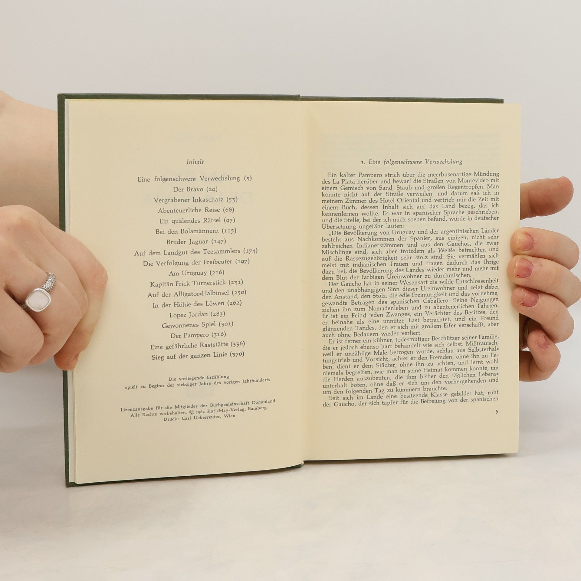 Am Rio de la Plata beginnt für den Erzähler das Südamerika-Abenteuer. In einem von Revolutionen zerrissenen Land bringt ihm seine Ähnlichkeit mit einem dortigen Parteigänger prompt erste Verwicklungen. Ein Geheimnis zieht ihn ins Landesinnere von Argentinien, wo er dem Revolutionär Lopez Jordan begegnet.