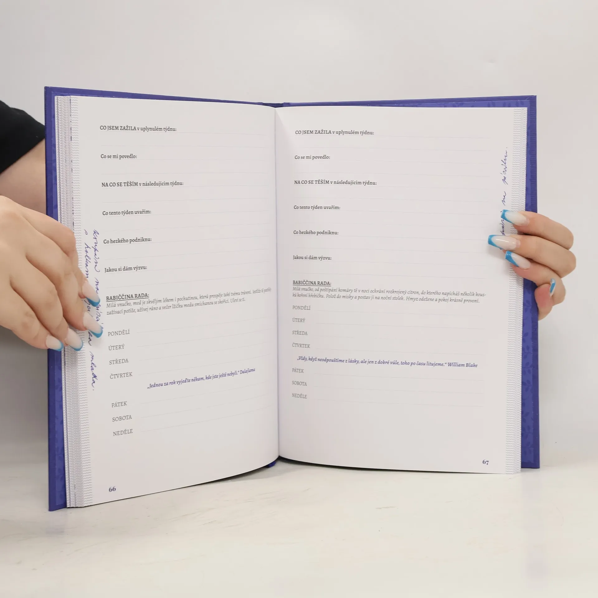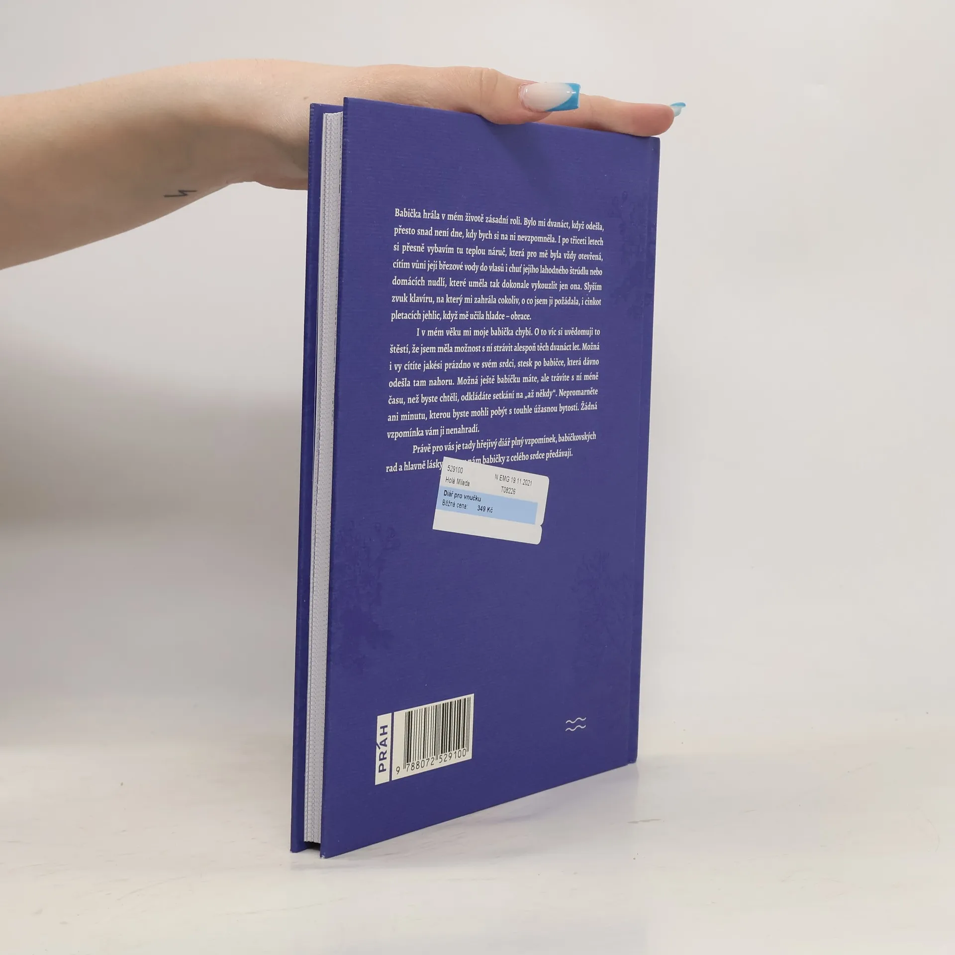 Zcela unikátní vyznání lásky a obdivu všem babičkám od spisovatelky Michaly Jendruchové formou praktického interaktivního diáře. Diář je v dárkovém grafickém provedení, které vás provede rokem a pomůže zaznamenat vzpomínky na blízké. Obsahuje různé interaktivní návody a techniky, díky nimž se můžete naučit například, jak ušít zástěru, vyrobit svíčku ze včelího vosku nebo složit origami velikonočního králíka. Autorka vzpomíná na svou babičku, která hrála v jejím životě zásadní roli. I po třiceti letech si pamatuje teplou náruč, vůni březové vody a chuť lahodného štrúdlu, který uměla dokonale připravit. Zvuky klavíru a pletacích jehlic jí stále zní v uších. I v dospělosti cítí její absenci a uvědomuje si štěstí, že s ní mohla strávit dvanáct let. Pokud i vy cítíte prázdno po babičce, která odešla, nebo máte babičku, s níž trávíte málo času, nezapomínejte na důležitost společných chvil. Tento hřejivý diář je plný vzpomínek, babičkovských rad, unikátních návodů a především lásky, kterou nám tyto ženy rády předávají.