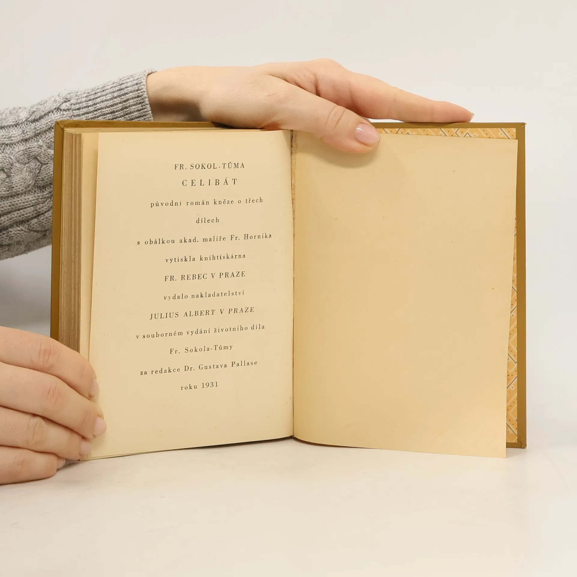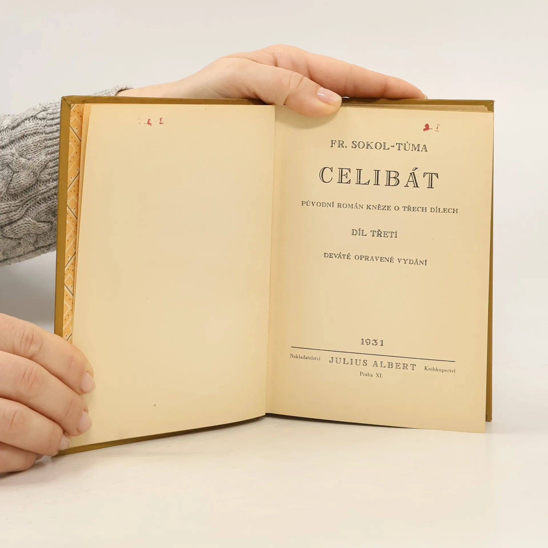 Román kněze o třech dílech. Trojdílný ,,Celibát" je skvostnou knihou konfliktu nadřízené moci duchovní a světské se služebníkem božím, který přes své poslání dovedl si uchovati vrozený pud po pokroku. Jako takový nemůže bez diskuse nechati otázku nuceného celibátu. Hnusí se mu lež apřetvářka a povýšení na svůj pidestál lásku a pravdu je štván od těch kdož si hoví raději v přítmí pohodlných služeb církve a brodí se kalem pokrytectví a pomluv. Kněz Sokola- Tůmy je příliš čistý pro církev, jež ráda na svých farách připouští nelegitimní svazky duší, než dovolenou pravdu před světem. Všichni ti, kteří znají případy jež jsou obdobou tohoto Celibátu, budou uchváceny křišťálovými charaktery: Tohoto osvíceného kněze a ženy, jež se před světem vyznala z této dojemné lásky.