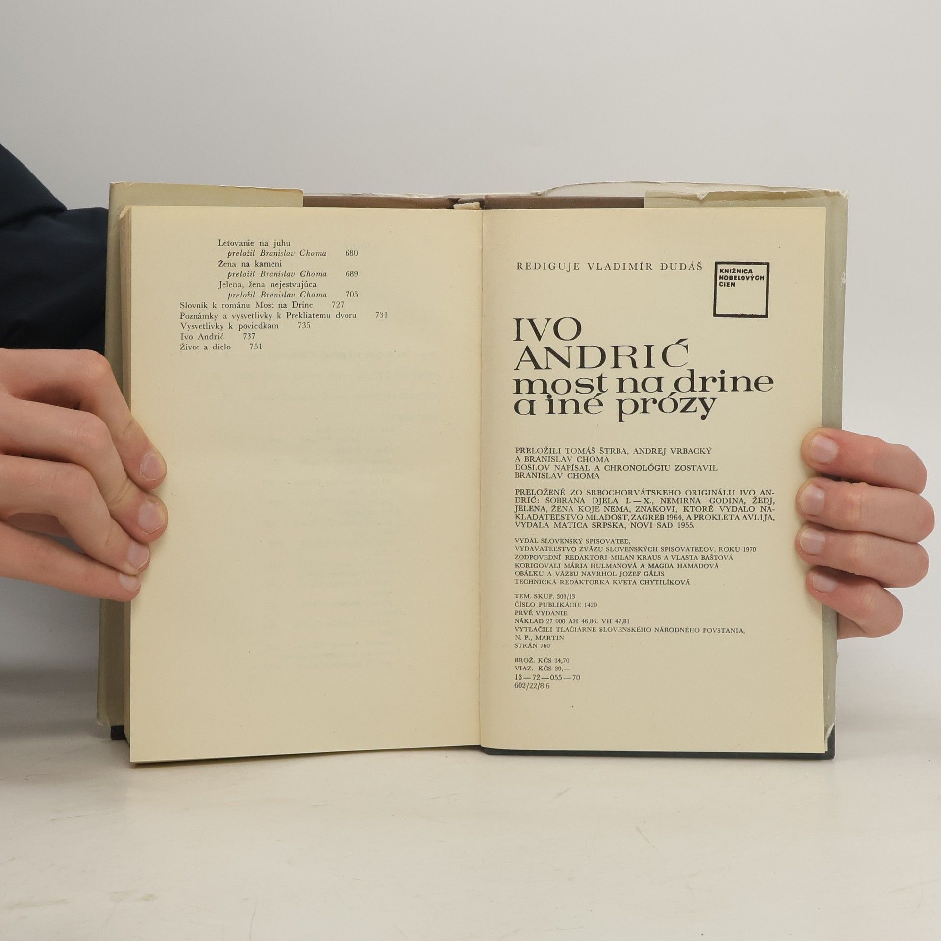 Vydanie obsahuje okrem románu Most na Drine (najznámejšie autorove dielo - zaoberá sa životom v Bosne pod nadvládou Osmanskej ríše) a novely Prekliaty dvor aj výber z poviedkovej tvorby pôvodom srbského autora. Spolu 15 poviedok. Švédska akadémia sa pri vykonávaní svojich vysokých povinností tentoraz rozhodla vyznamenať spisovateľa jednej, ako sa vraví, malej krajiny Nobelovou cenou, ktorá podľa medzinárodných meradiel znamená vysoké uznanie. 13-72-055-70