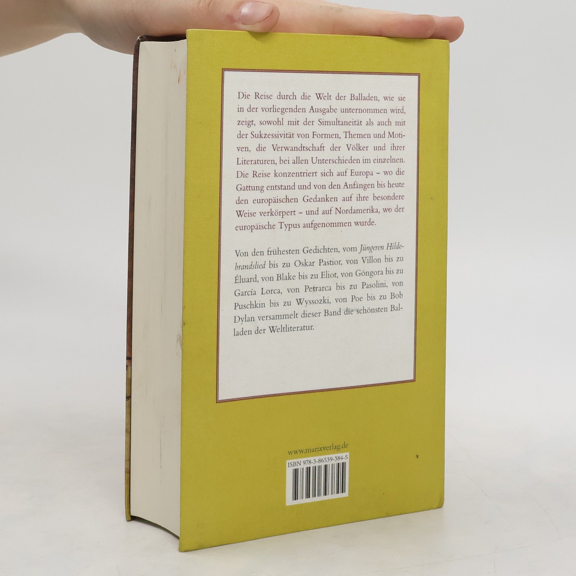 Die Reise durch die Welt der Balladen, wie sie in der vorliegenden Ausgabe unternommen wird, zeigt, sowohl mit der Simultaneität als auch mit der Sukzessivität von Formen, Themen und Motiven, die Verwandtschaft der Völker und ihrer Literaturen, bei allen Unterschieden im einzelnen. Die Reise konzentriert sich auf Europa - wo die Gattung entstand und von den Anfängen bis heute den europäischen Gedanken auf ihre bescheidene Weise verkörpert - und auf Nordamerika, wo der europäische Typus aufgenommen wurde. Von Goethes Erlkönig, Brentanos Lureley und Fontanes Herr von Ribbeck auf Ribbeck im Havelland über Brechts Seeräuberjenny, Poes Der Rabe und Baudelaires Die Katze bis hin zu Wladimir Wyssozki, Oskar Pastior, Robert Gernhardt und Wyslawa Szymborska versammelt dieser Band die schönsten Balladen der Weltliteratur.