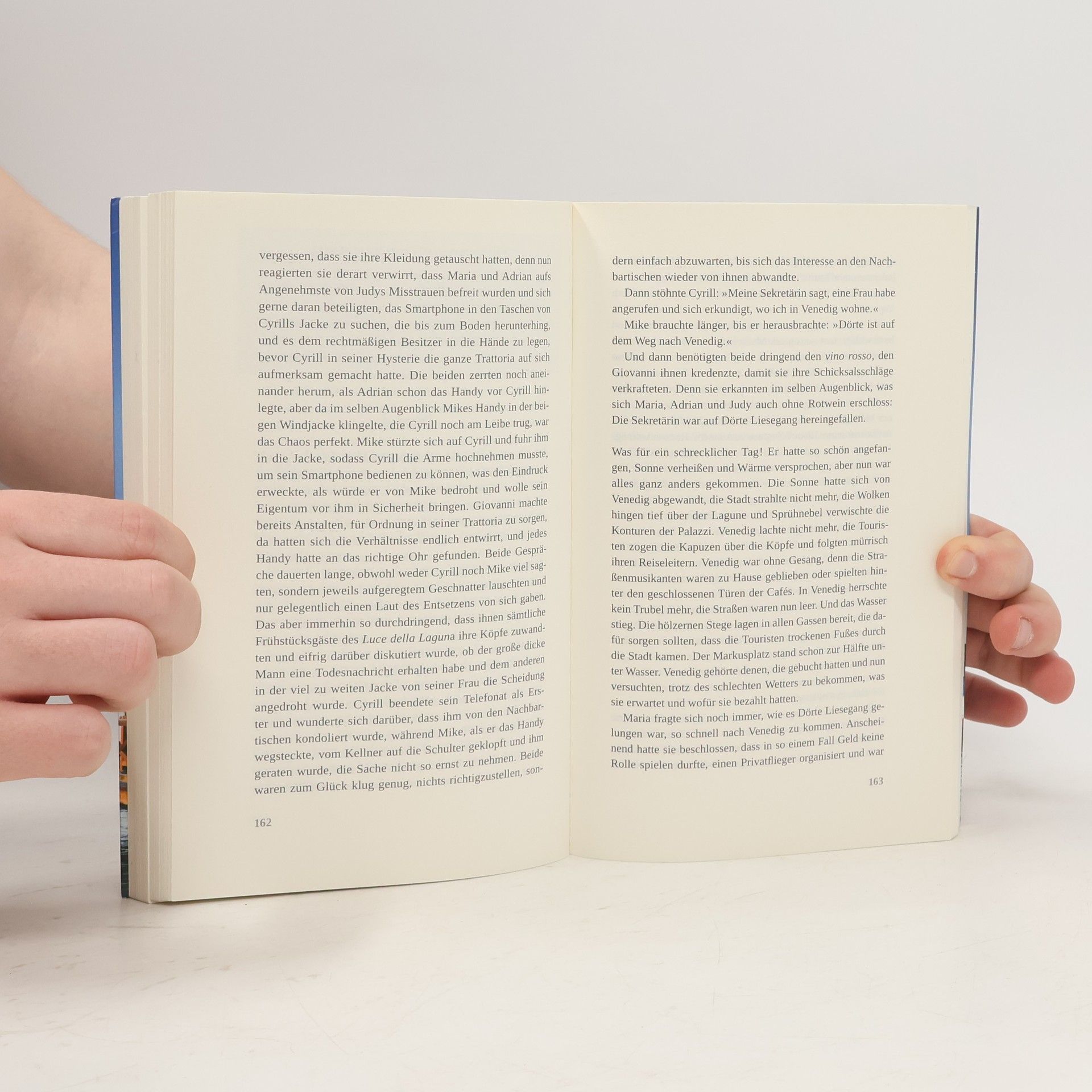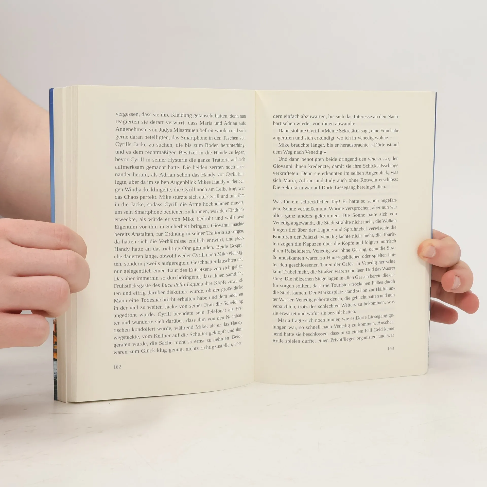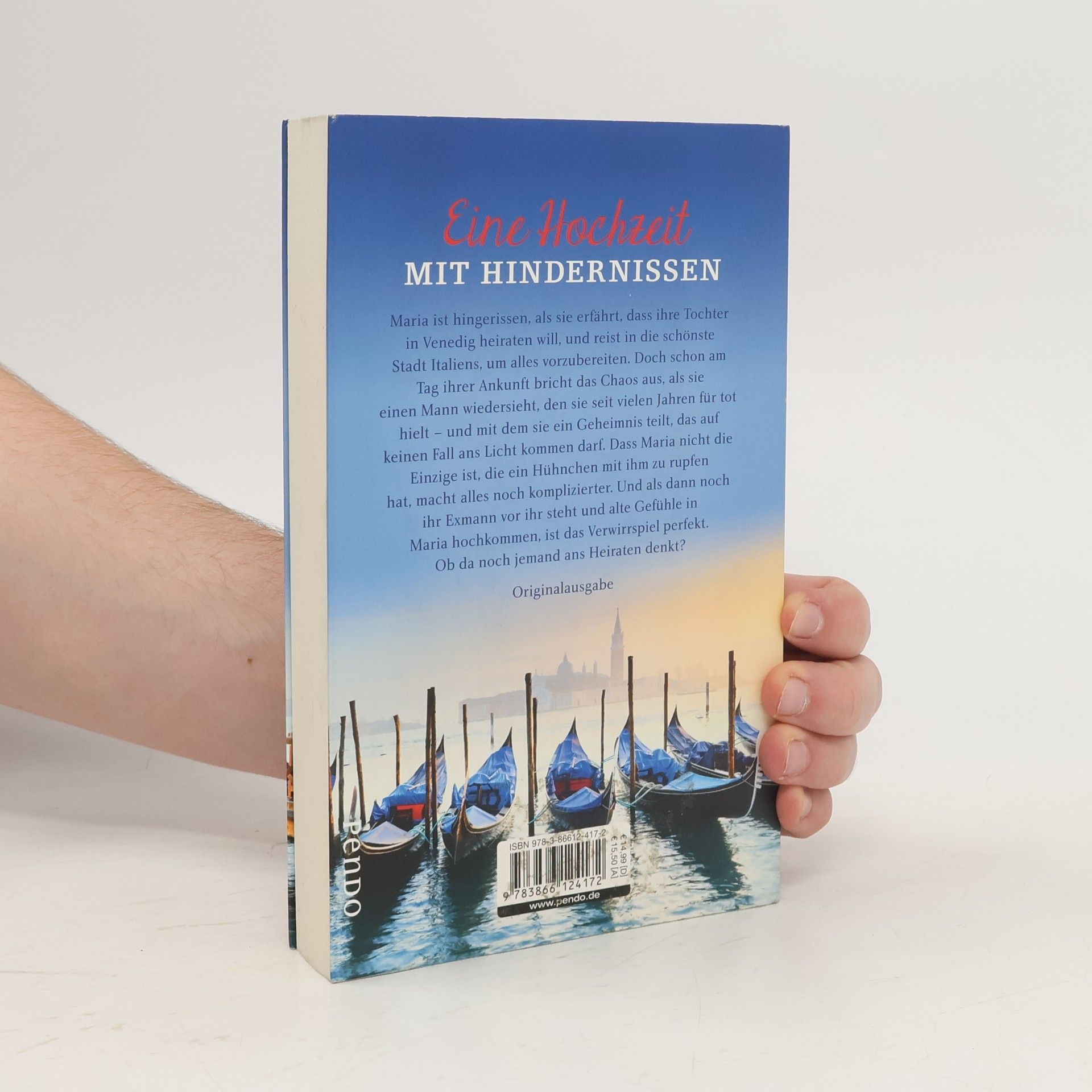 Hochzeit in Venedig! Maria ist hingerissen, als ihre Tochter Amelie ihr die Vorbereitungen für das Fest überlassen will. Sie kann ja nicht ahnen, dass sie es nicht nur mit Gästelisten und Tischdekorationen zu tun bekommen wird, sondern vor allem mit ihrer Vergangenheit: Leander, der Mann, mit dem sie ein Geheimnis teilt, steht verkleidet auf dem Markusplatz und geigt! Vor zehn Jahren wurde er für tot erklärt, und jetzt verdient er sich als Straßenmusiker seinen Lebensunterhalt. Maria wirft die High Heels von sich und läuft ihm nach. Dumm nur, dass sie nicht die Einzige ist, die ihn erkannt hat. Schlimmer noch, dass es andere gibt, die ein fettes Hühnchen mit Leander zu rupfen haben … Ein rasantes Verwirrspiel quer durch Venedig beginnt. Ob am Ende noch jemand ans Heiraten denkt?