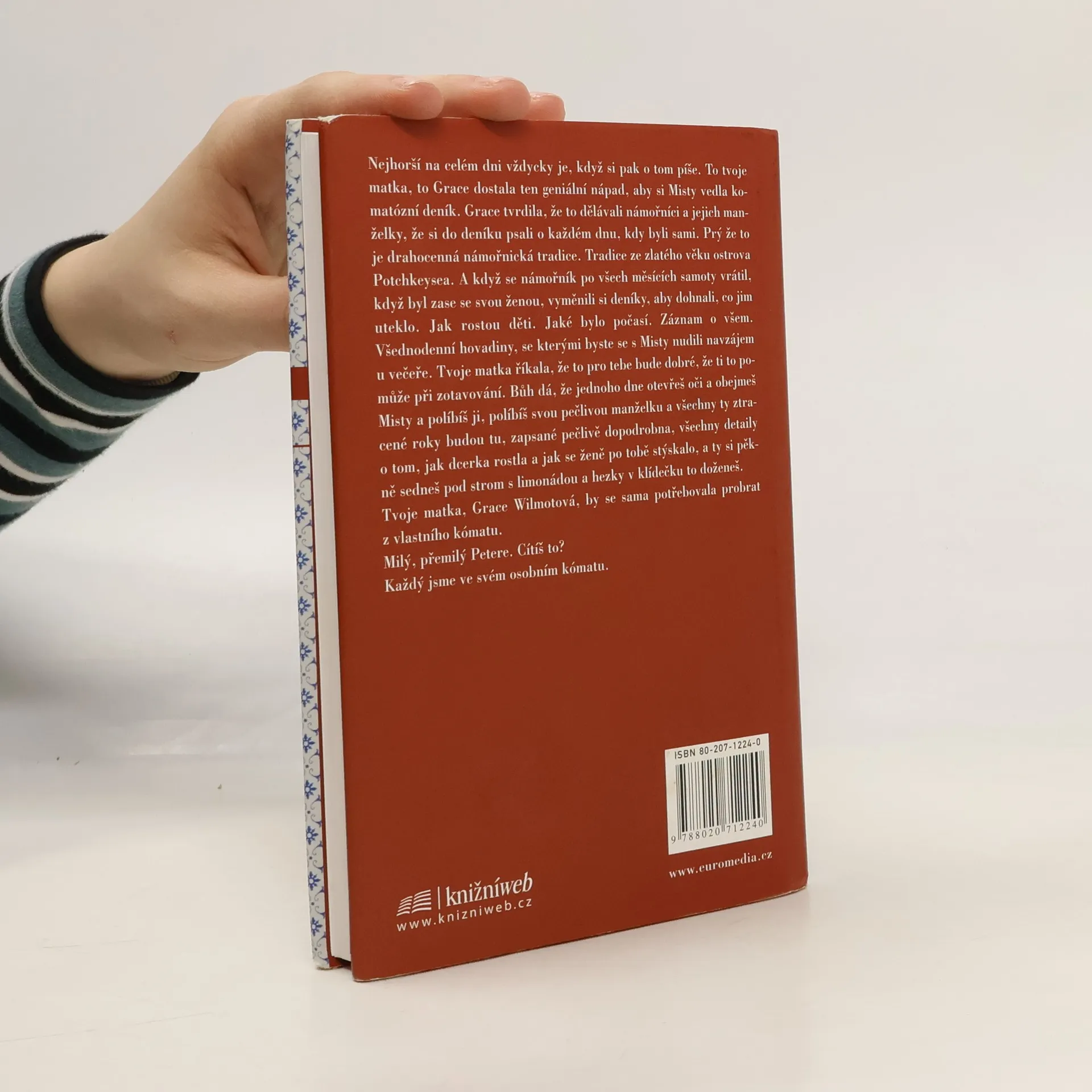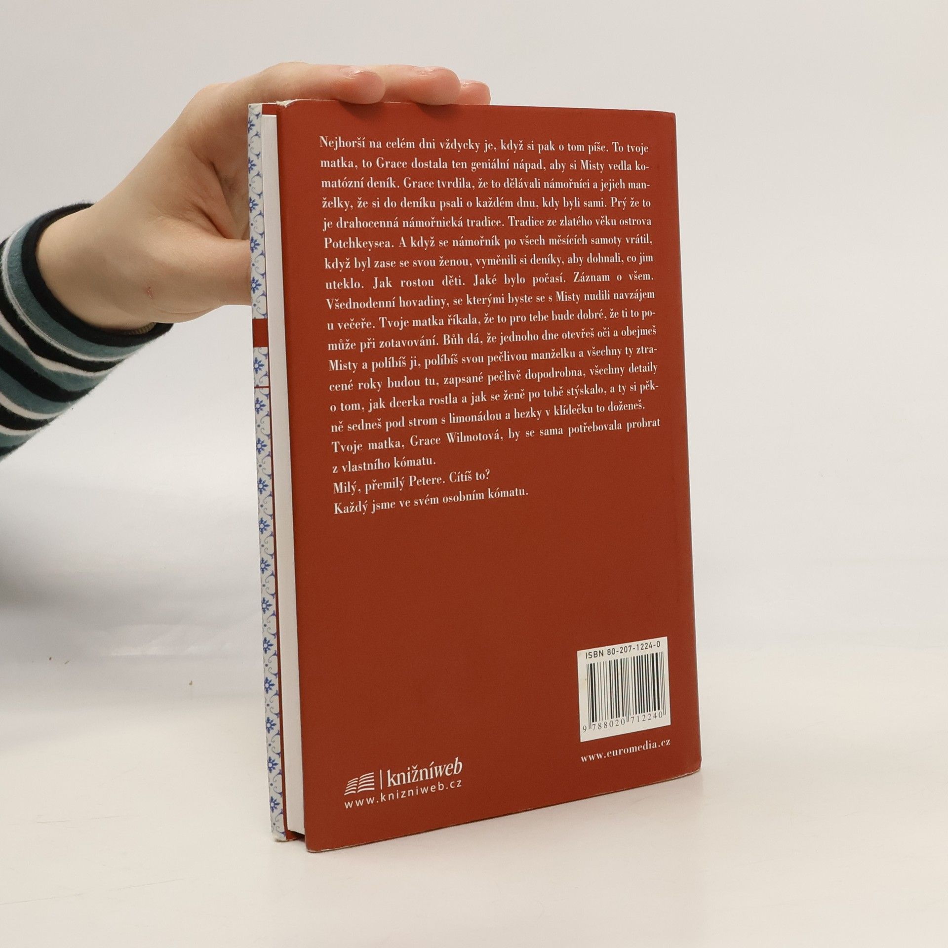 Peter Wilmot se s Misty seznámil na výtvarné škole. Kromě bradavky propíchnuté špendlíkem a svetru od krve ji zaujal ještě něčím jiným. Směsice odporu a obdivu vyústila ve sňatek a život v kamenném domě na ostrově Potchkeysea. Všechno, co člověk dělá, je autoportrét. Misty chtěla být malířkou, ale těhotenství jí to znemožnilo — místo toho skončila jako servírka a pokojská, obtloustlá páchnoucí ženská, která svůj příběh zaznamenává ve formě deníkových zápisků pro svého manžela. Pro tebe, milý Petere. Ty šmejde. Peterův pokus o sebevraždu, který ho umrtví ve věčně kómatickém stavu, ji k umění navrací. Misty začíná malovat: impulzivně, automaticky. Jako kdyby jen zaznamenávala vize. Jako kdyby její ruku někdo vedl. Skutečné umění vzniká jedině z utrpení. Pak zjistí, že manžel tajně psal na stěny domů, které opravoval, zlověstná proroctví o ostrově, na který nemá nikdo "cizí" vstoupit; o ostrově, jejíž komunitu má kdosi spasit svými obrazy. Peterův otec zemřel, ale chybělo úmrtní oznámení. Sám Peter měl v krvi spoustu prášků na spaní, které nikdy nebral. A pak se utopí Mistina dcerka Tabi. Zločiny proti celé skupině obyvatel. Spása má dost blízko k apokalypse.... celý text
