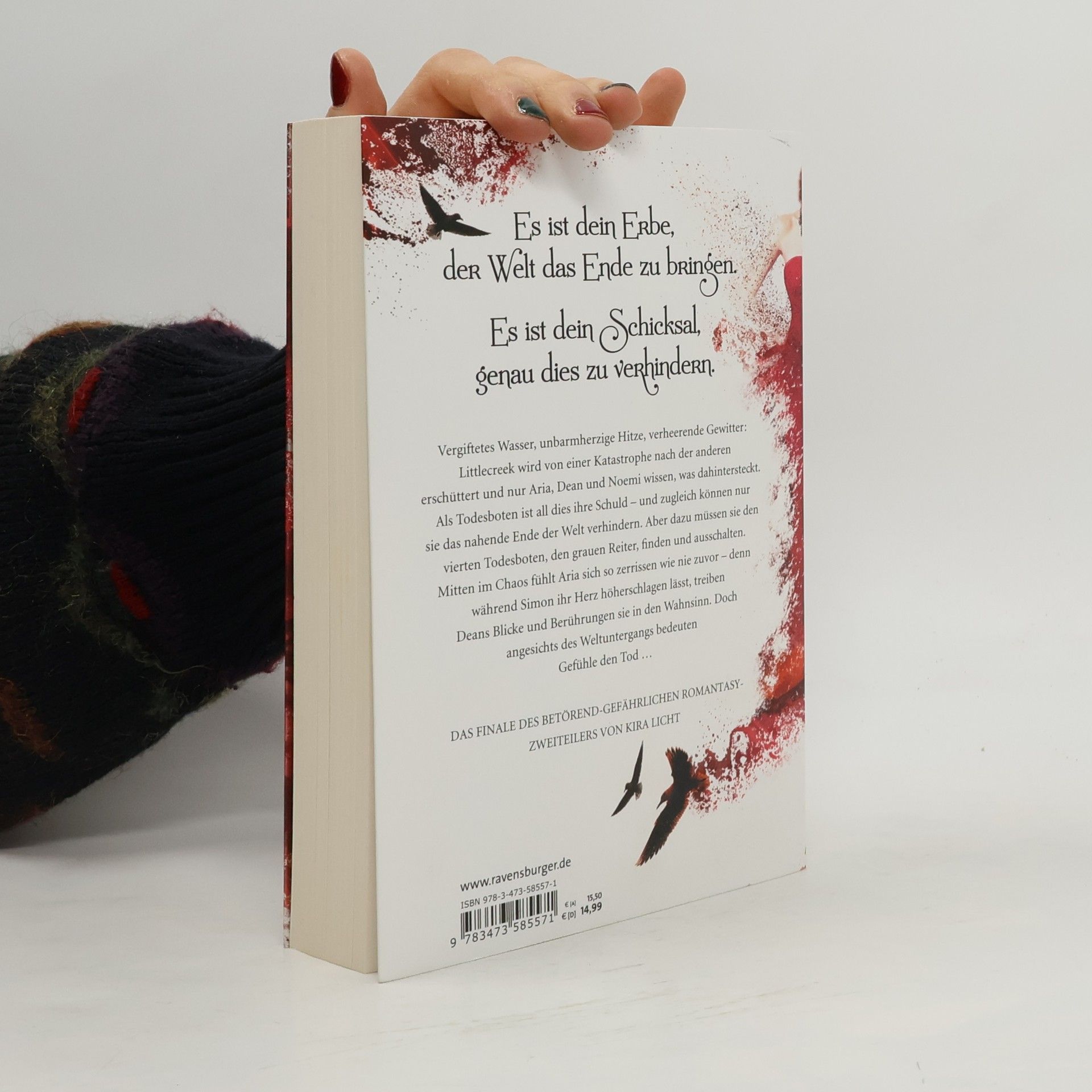 Aria ist verzweifelt: Als Todesbotin ist sie für das nahende Ende der Welt verantwortlich. Zudem ist ihre beste Freundin entführt worden und sie wissen noch immer nicht, wer der vierte Todesbote sein könnte. Denn sobald er auftaucht, bricht die Apokalypse endgültig aus. Aria sucht Trost bei Simon – wenngleich sie auch Dean nicht vergessen kann. Doch angesichts des Weltuntergangs bedeuten Gefühle und Schwäche den Tod ...
