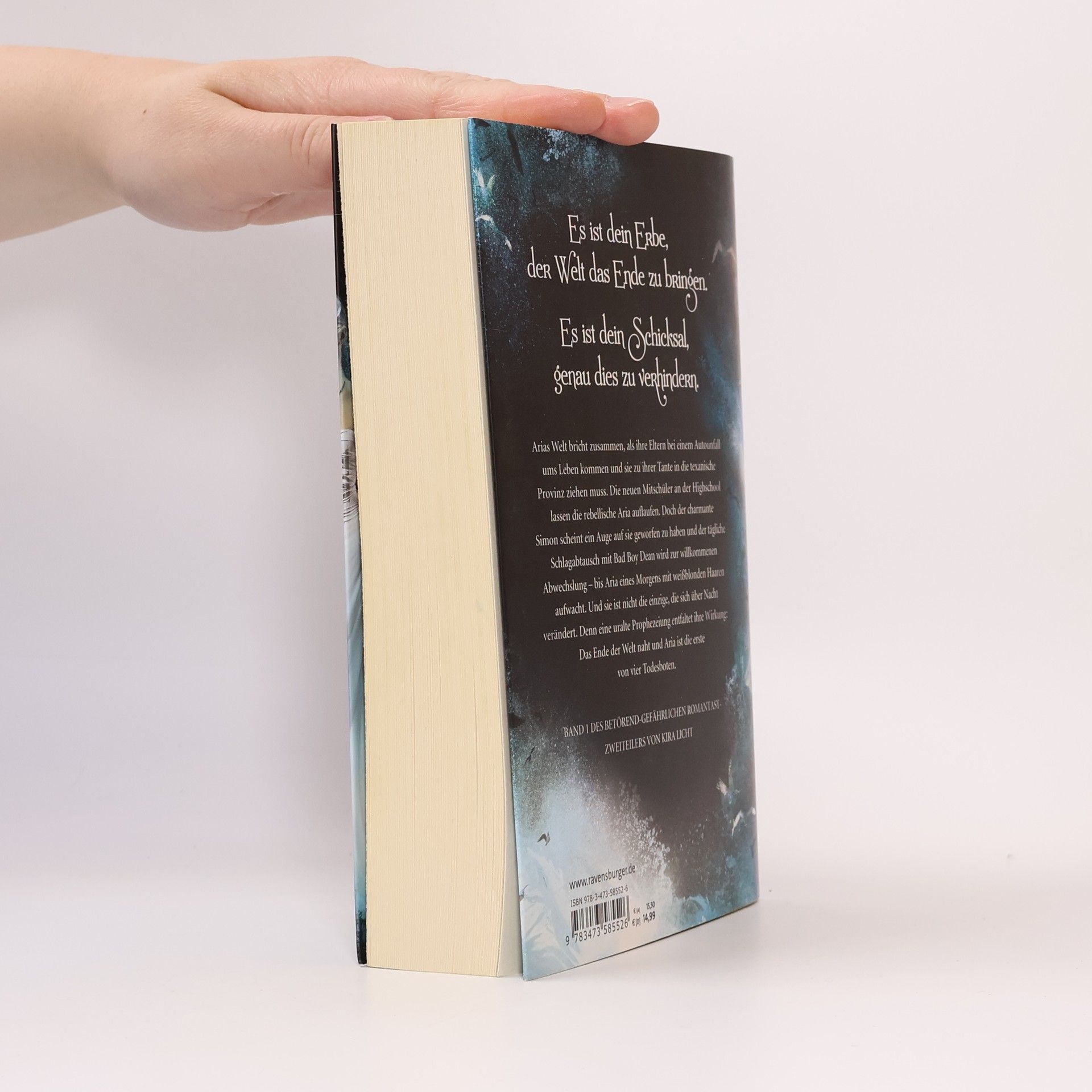 Es ist dein Erbe, der Welt das Ende zu bringen.Es ist dein Schicksal, genau dies zu verhindern.Arias Welt bricht zusammen, als ihre Eltern bei einem Autounfall ums Leben kommen und sie zu ihrer Tante in die texanische Provinz ziehen muss. Die neuen Mitschüler an der Highschool lassen die rebellische Aria auflaufen. Doch der charmante Simon scheint ein Auge auf sie geworfen zu haben und der tägliche Schlagabtausch mit Bad Boy Dean wird zur willkommenen Abwechslung - bis Aria eines Morgens mit weißblonden Haaren aufwacht. Und sie ist nicht die einzige, die sich über Nacht verändert. Denn eine uralte Prophezeiung entfaltet ihre Wirkung: Das Ende der Welt naht und Aria ist die erste von vier Todesboten.