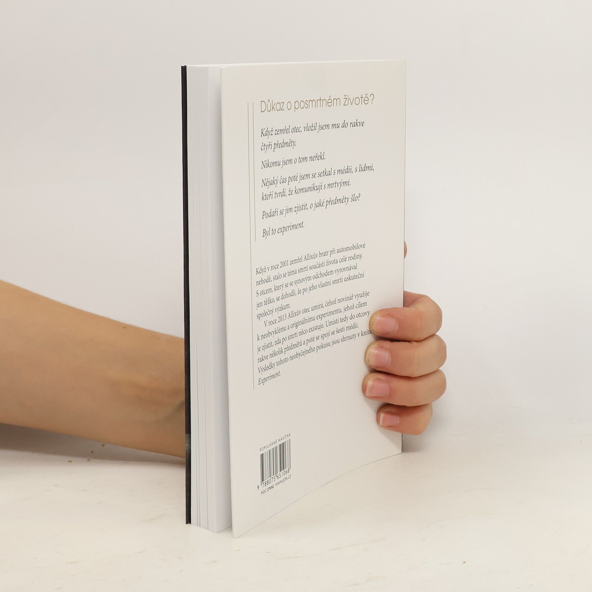 Když zemřel otec, umístil jsem do jeho rakve několik předmětů. Nikomu jsem o tom neřekl. Nějaký čas poté jsem se setkal s médii, s lidmi, kteří tvrdí, že komunikují s mrtvými. Podaří se jim zjistit, o jaké předměty šlo? Byl to experiment. Můžeme komunikovat s mrtvými? Někteří lidé tvrdí, že ano, a dokonce si z této komunikace udělali živnost. Na konzultace k nim přicházejí tisíce lidí. Mají skutečně výjimečné schopnosti, nebo jde o pouhou iluzi? Stéphane Allix hledal odpověď na tyto otázky během setkání se šesti médii. Výsledky jsou ohromující a potvrzují, co už dřív odhalila vědecká bádání na toto téma: posmrtný život je dnes zcela racionální hypotézou. Jak se člověk stane médiem? Je to dar, nebo prokletí? Jak popsat to, co se děje po smrti? Kam odcházíme? Může konzultace u média pomoci při procesu truchlení? Jak se vyhnout šarlatánům? Kniha se věnuje všem zmíněným otázkám a vtahuje nás do reality, která je jednoduchá a přitom závratná: s milovanými bytostmi, které nás opustily, můžeme komunikovat i po smrti.
