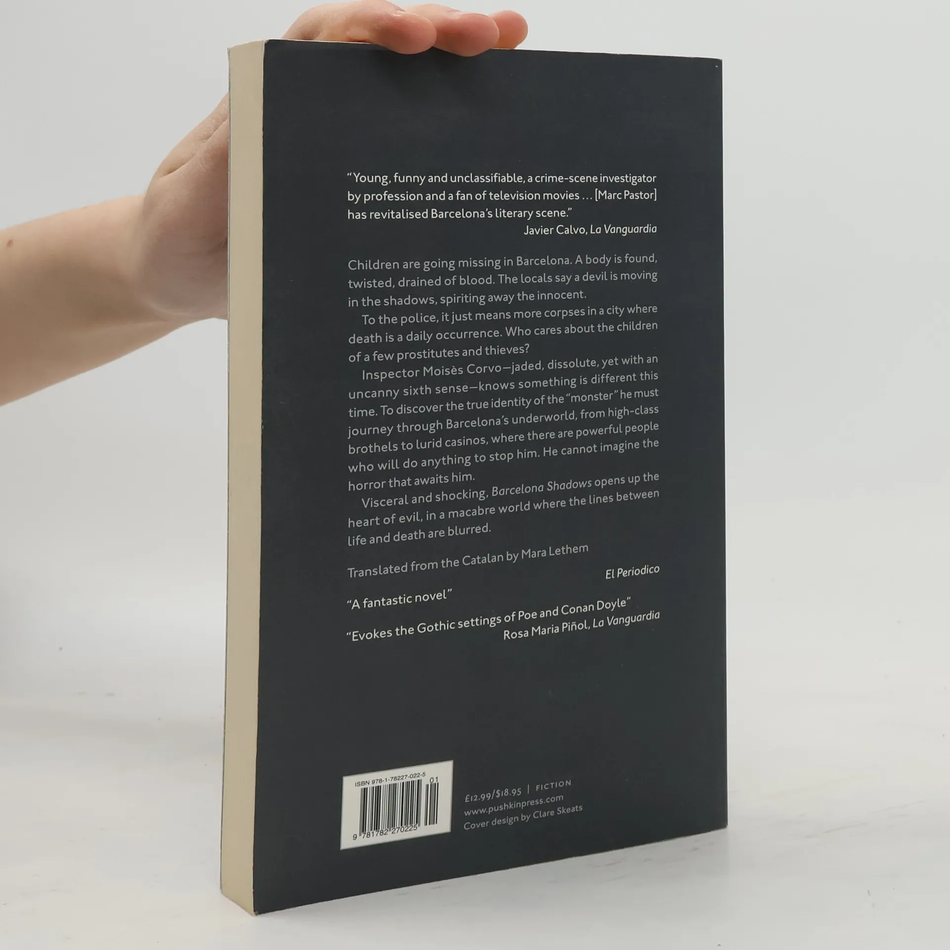 In 1917, Barcelona's infamous Raval district is alive with outlandish rumours. A monster is abducting and murdering young children. The police are either powerless to prevent his terrible crimes,or indifferent to them, since they concern only the sons and daughters of prostitutes. But Inspector Moisès Corvo is determined to stop the outrages, and punish their perpetrator. His inquiries take him on a tour of the Catalan capital,through slum, high-class brothel and casino, and end in a stomach-turning revelation.