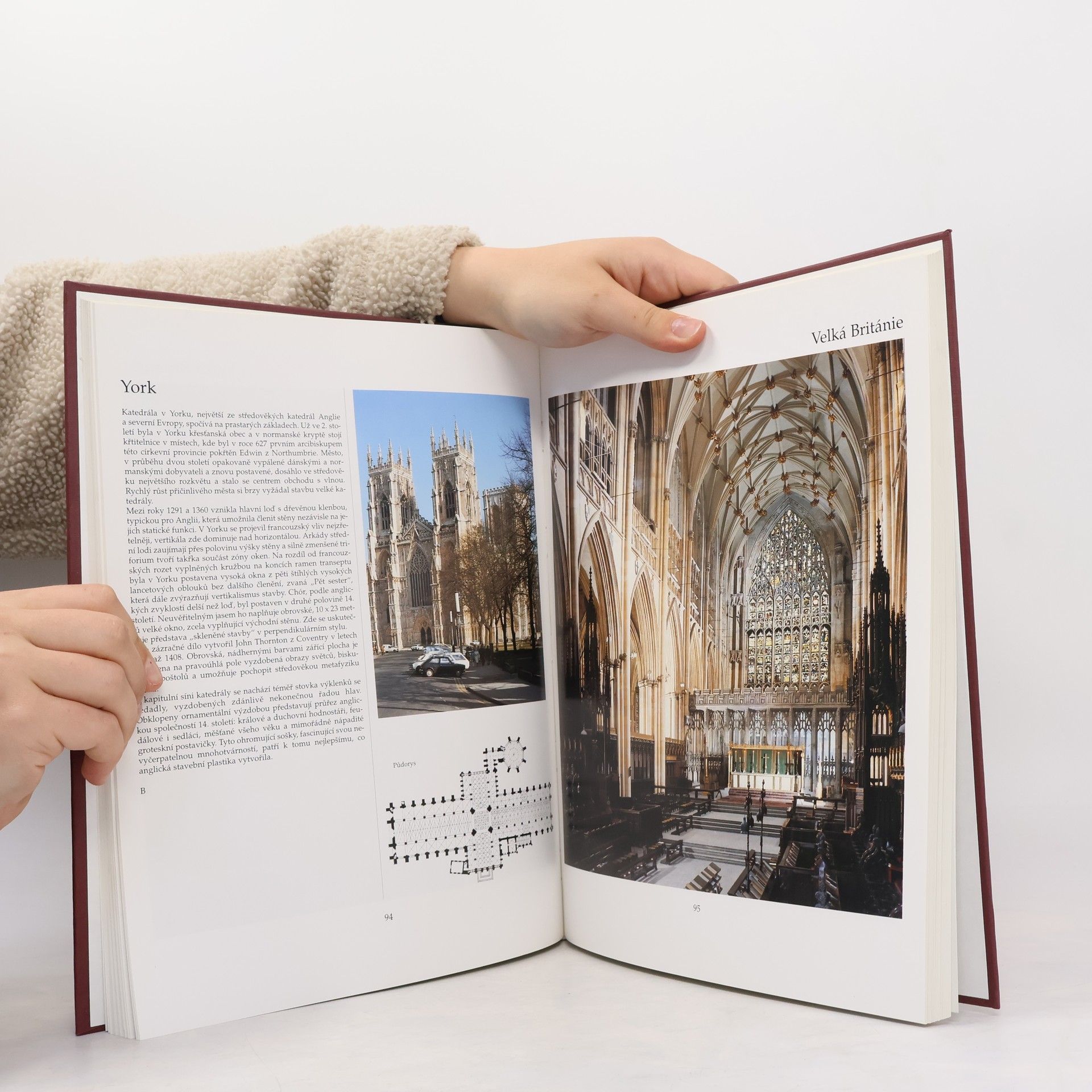 Nad celou Evropou se klene oblouk slavných katedrál - od Canterbury přes Chartres po Batalhu, od Countances přes Kolín nad Rýnem ař do Prahy. Stovka katedrál, hojně navštěvovaných, ale i skrytých klenotů, se zde představuje slovem i obrazem. Na 268 vyobrazeních, z toho 143 barevných, ožívá období sahající od raného středověku přes vrcholně románskou a vrcholně gotickou epochu až k pitoreskním pozdním formám iberského stavebního umění. Půdorysy a architektonické skici umožňují nahlédnout do struktury staveb. Detaily nádherných oken se střídají s dvoustránkovými celkovými pohledy. Románská architektura nám zanechala skvělá svědectví - jejich příkladem budiž Vézelay. Příznačné pro ně bylo to, že tíhu klenby nesly silné zdi. Následkem toho nebylo možno postavit příliš vysoké klenby ani prolomit velká okna. Teprve vynález křížové žebrové klenby a opěrného systému umožnil stavět vzdušné a členité gotické stavby. Klenební pole středních lodí rostla až do výše 37 metrů. Lancetová a sdružená okna vyvolávala nádherné světelné efekty. Úchvatné tváře výrazných soch svědčily o jistotě, že Kristus přijde, aby soudil svět, živé i mrtvé. Měla být prokázána slabost kacířských učení, aby zbloudilí věřící byli přivedeni zpět na cestu pravou. A tak tvořily katedrály v průběhu staletí ostrovy v moři náboženských nepokojů a pochybností. Ještě stále nabízejí lidstvu nádherný, útěšný obraz a připomínají nám ducha a důstojnost minulých dob.
