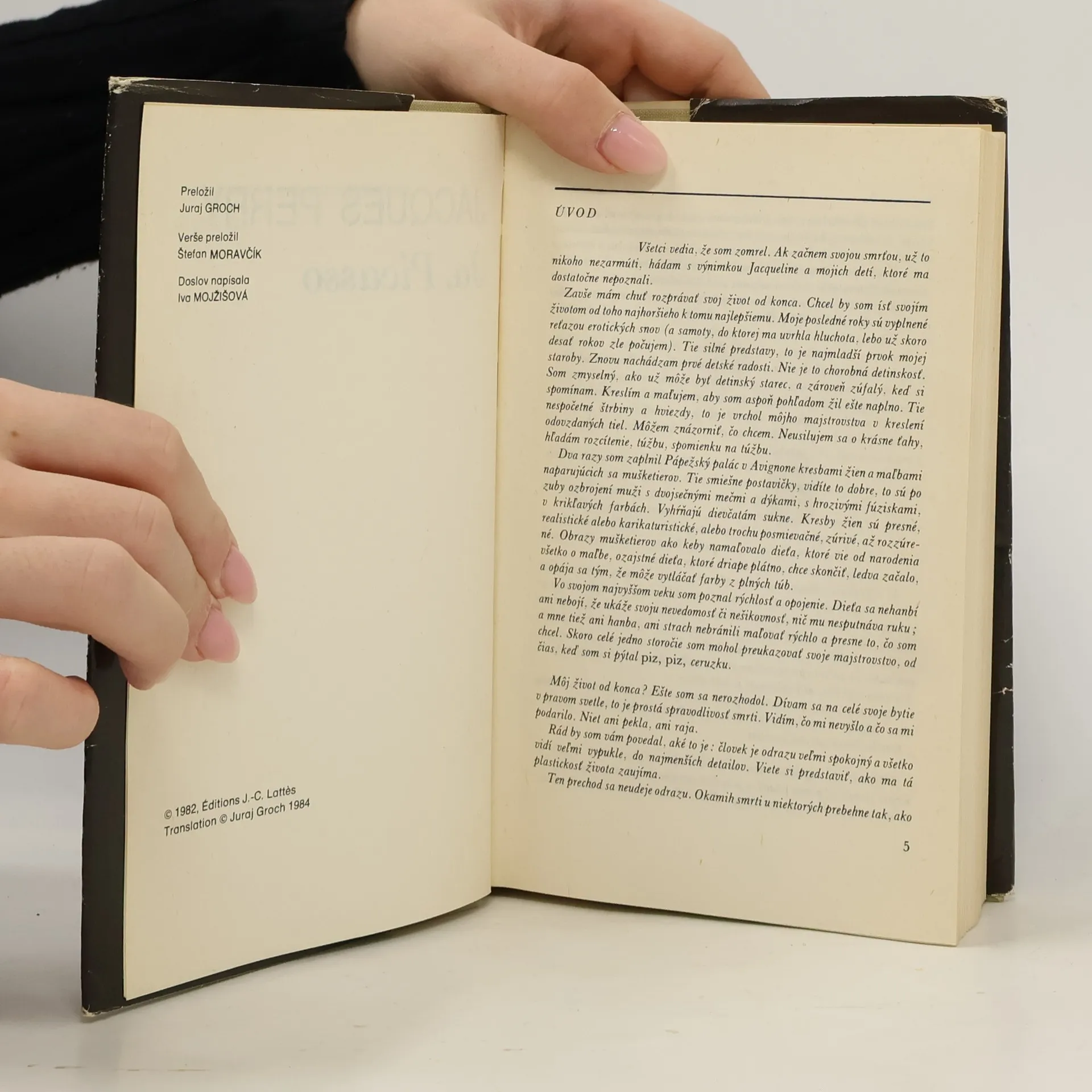 K bohatej literatúre venovanej dielu a životu Pabla Picassa pribudla aj biografia francúzskeho románopisca Jacqua Perryho Ja, Picasso (1982). Je to fiktívna Picassova spoveď, ktorej Perry ponechal autentickosť, picassovský rozlet i šarm a aj dávku sebakritickosti. Picasso nás sprevádza celým svojím umeleckým vývinom, od samých začiatkov, ešte ovplyvnených impresionizmom, cez obdobie nesúce sa v znamení Avignonských slečien, obrazu z roku 1907, ktorý znamenal prelom nielen v jeho tvorbe, ale vo výtvarnom umení vôbec, až po vrcholné tvorivé obdobie. Picassovo dielo takisto ako jeho osobnosť je úzko späté so všetkými protirečeniami 20. storočia. Z nich umelec vyťažil deformáciu a dekompozíciu, ktoré zmenili tvár moderného umenia. Tak ako nás Picasso vpúšťa do svojej dielne, keď nám rozpráva o svojej umeleckej metóde a o vzniku viacerých svojich obrazov, vpúšťa nás bez zábran aj do svojho najintímnejšieho života, pričom nezakrýva svoje chyby, nebojí sa hovoriť o sebe otvorene. Veľmi živo a zaujímavo napísaná biografia prerastá do životopisu spoločenského a kultúrneho diania z čias, keď sa na ňom Picasso aktívne zúčastňoval.