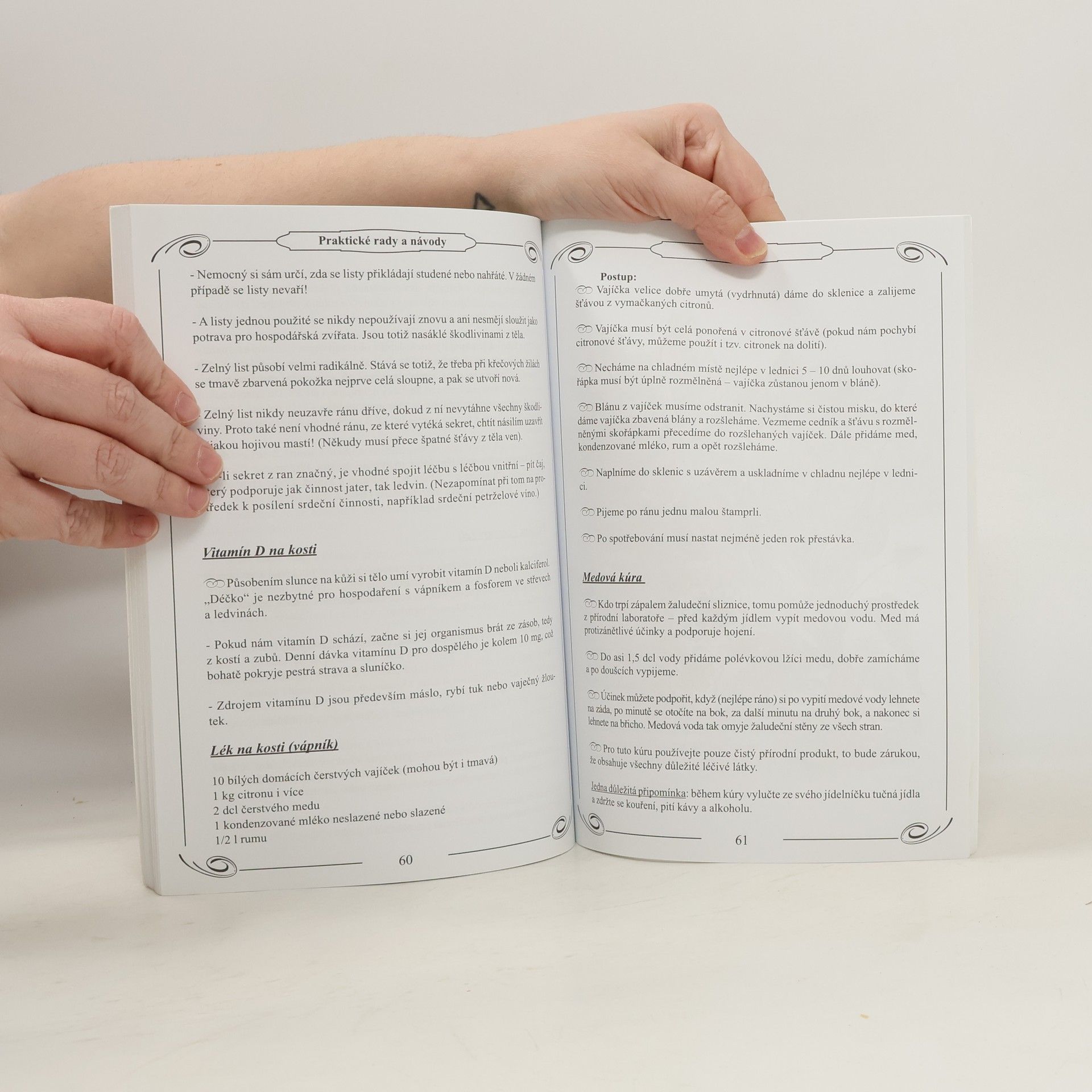 Příručka plná praktických rad triků,např. jak si poradit v domácnosti, jak si upevnit zdraví a dokázat si sami jednoduše a rychle pomoci. Kromě přírodní kosmetiky jsou zde i recepty na přípravu nápojů, jako jsou přírodní čaje, sirupy, med, vína, likéry... V závěru knihy je ponechán prostor pro doplnění vlastních rad a návodů čtenářů.