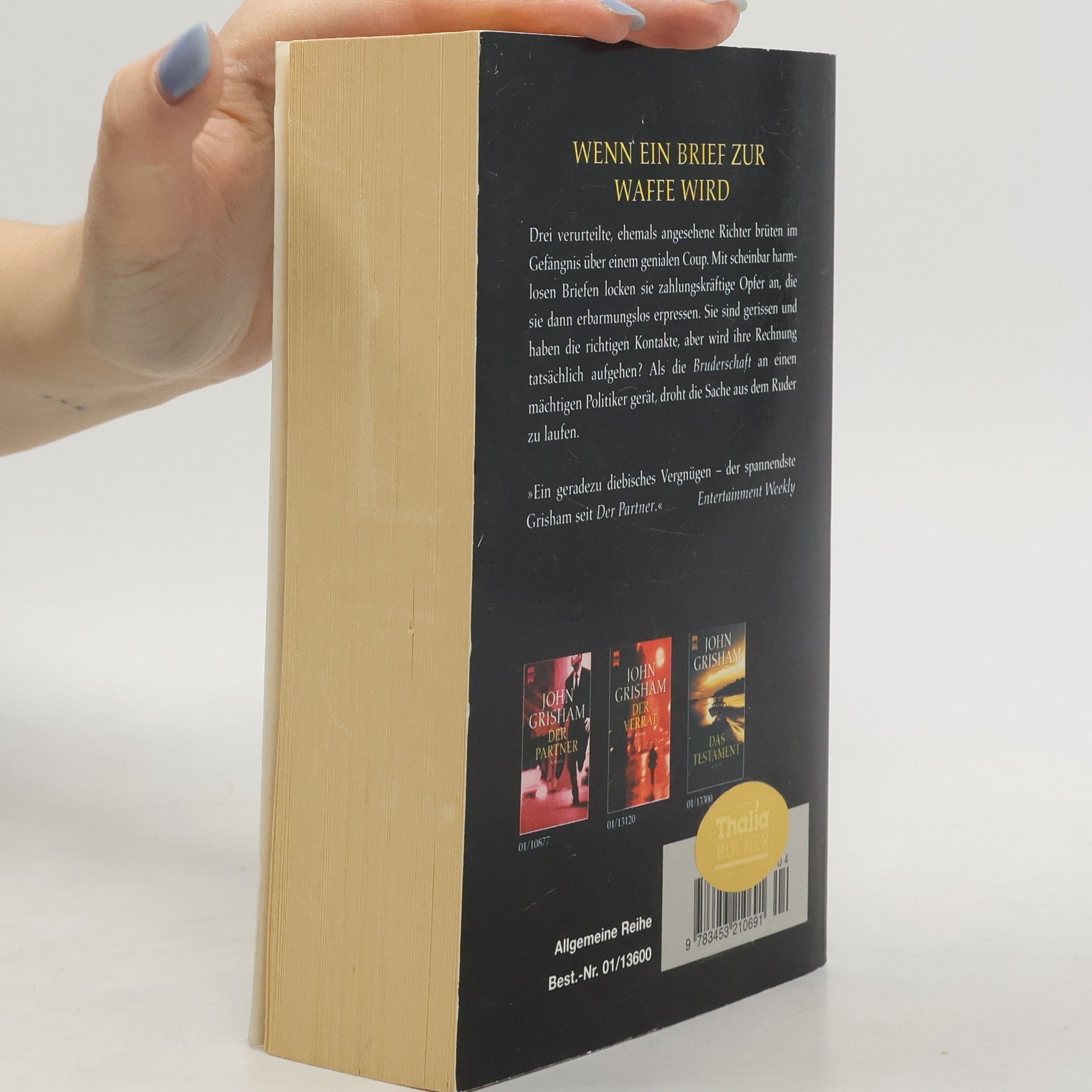 Wenn ein Brief zur Waffe wird Drei verurteilte Richter brüten im Gefängnis über einem genialen Coup. Wenn alles klappt, haben sie für die Zeit nach dem Knast ausgesorgt. Sie sind gerissen und haben die richtigen Kontakte, aber ist ihre Strategie wirklich wasserdicht? Ein raffiniertes Szenario entlang der Säulen der Macht.«Der spannendste Grisham seit „Der Partner“ - ein geradezu diebisches Vergnügen.» Entertainment Weekly