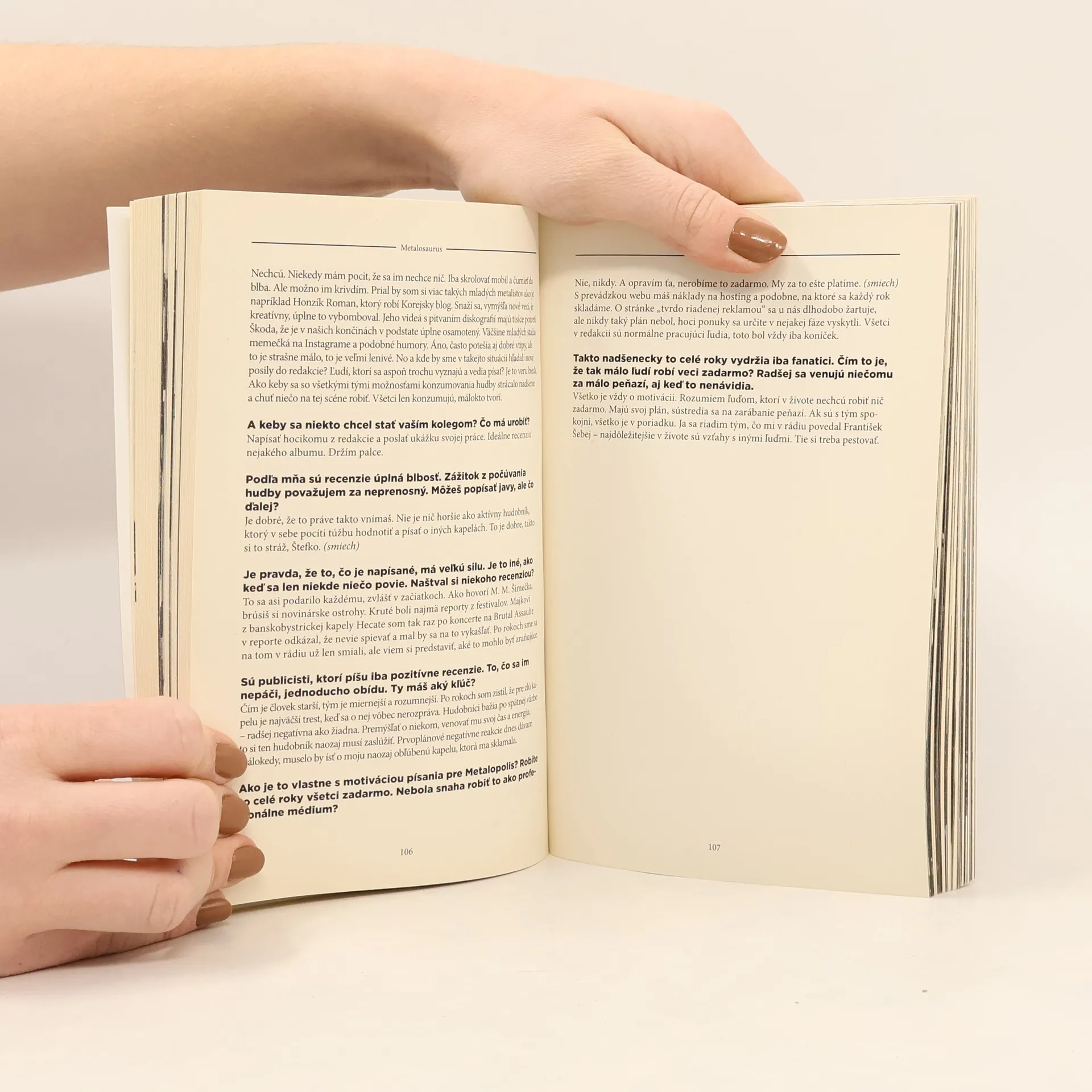 Rudi Rus je neprehliadnuteľným zjavom slovenského hudobného undergrundu, je jedným z posledných žijúcich hudobných publicistov v našich zemepisných šírkach. Svoju pozornosť upriamuje hlavne na tvrdú gitarovú hudbu. Na vlnách Rádia_FM už pätnásť rokov vytvára, vysiela a moderuje metalovúreláciu Headbanger_FM. Kniha je poctou Rudiho práci a je aj poctou priateľstvu medzi Rudim Rusom a Pištom Vandalom, ktorý v knihe prebral úlohu toho, ktorý sa pýta.