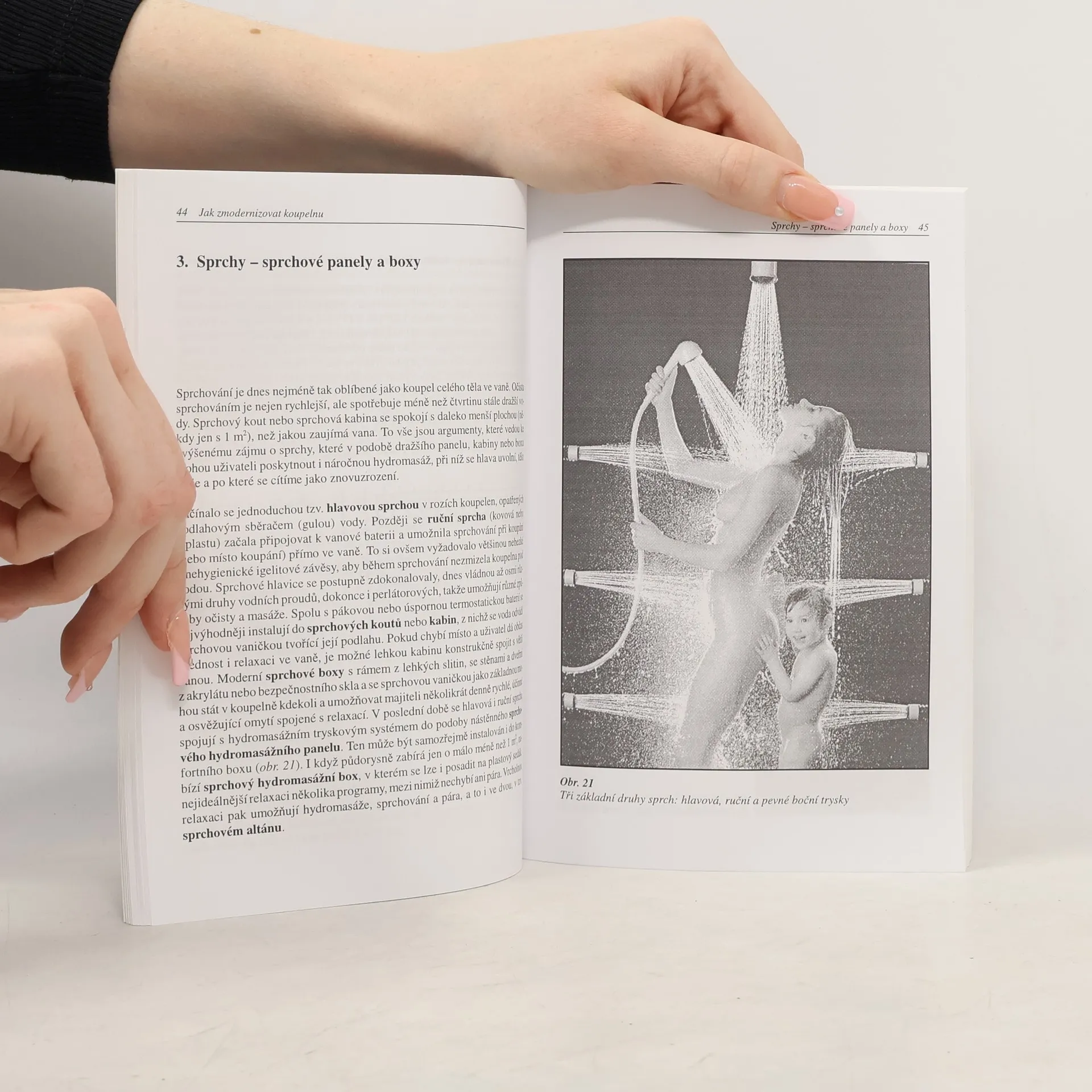 Příručka pro svépomocné rekonstrukce a úpravy koupelny a sanitárního zařízení. Přehled nových technologií a materiálů, přehled koupelnových sestav a sprchových koutů. Základní práce při stavební úpravě koupelny, základní instalatérské práce, tipy na vytápění, větrání a osvětlení koupelny včetně minima o koupelnové elektroinstalaci. Krátký přehled literatury a rejstřík. 136 stran, 72 obrázků. 1.vydání.