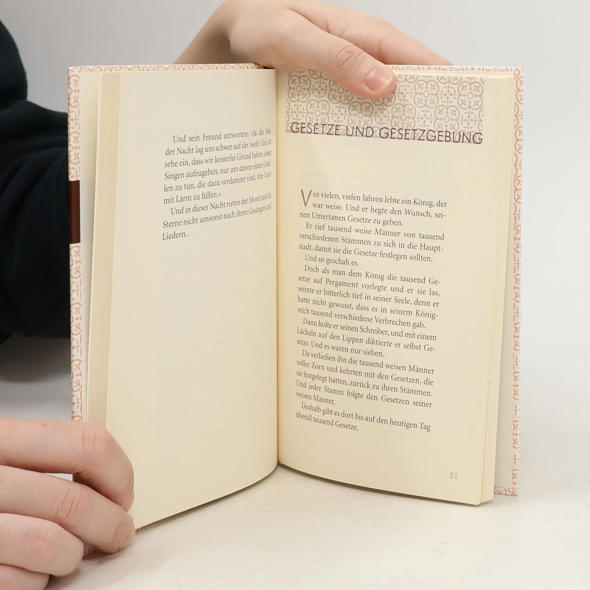 »Ich traf ihn an der Kreuzung, einen Mann nur in Mantel und Stock, das Gesicht verschleiert von Schmerz. Und wir grüßten einander, und ich sagte zu ihm: ›Komm in mein Haus und sei mein Gast.‹ – Und der Wanderer erzählte uns viele Geschichten in dieser Nacht und auch am nächsten Tag, doch was ich jetzt aufschreibe, kam aus der bitteren Härte seiner Tage, und seine Erzählungen handeln vom Staub und vom Erdulden seiner Wege.« In über 50 poetischen Parabeln und Gleichnissen vermittelt Khalil Gibran einsichtsvolle Antworten auf existentielle Fragen zu Themen wie Hoffnung, Liebe, Freiheit und Tod.