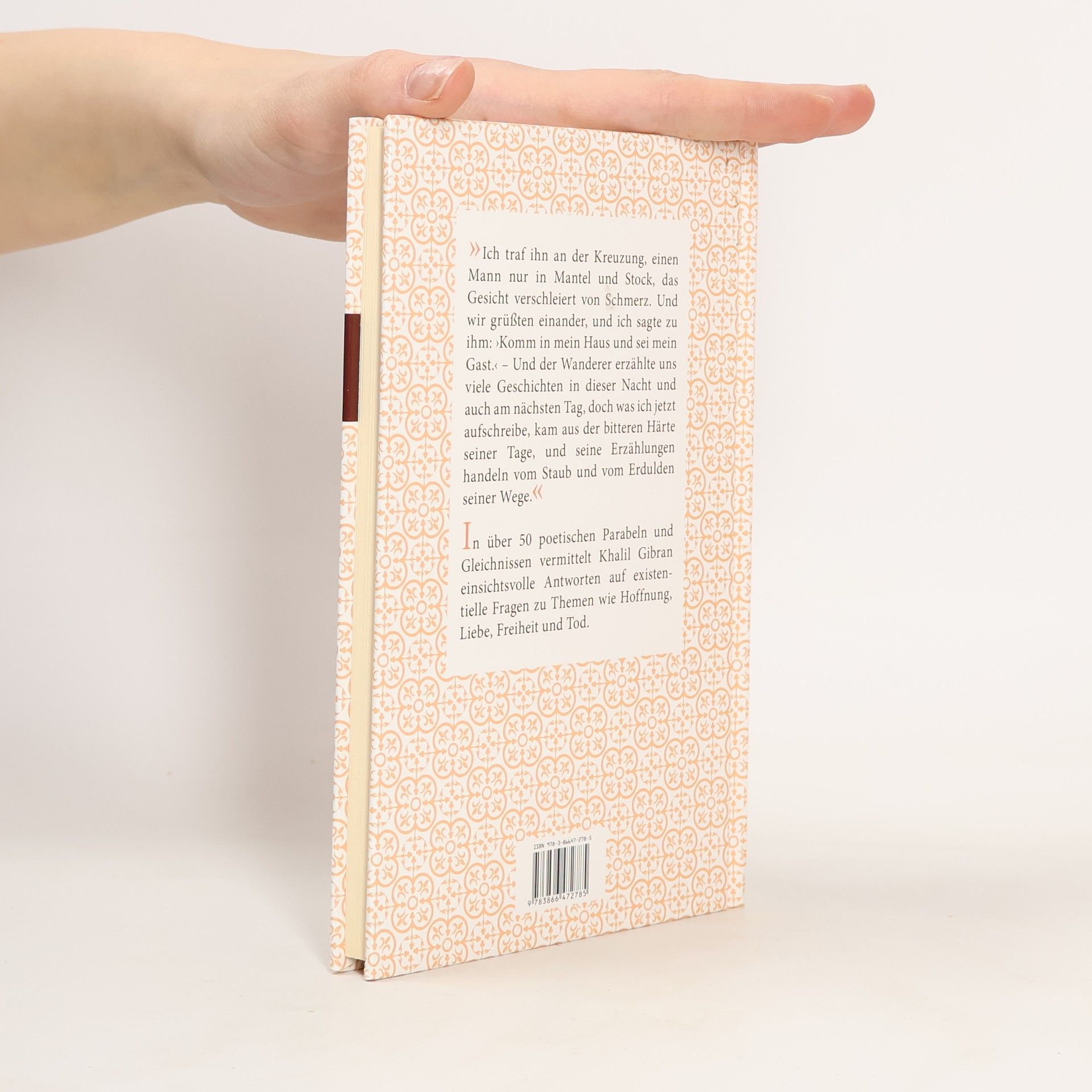 »Ich traf ihn an der Kreuzung, einen Mann nur in Mantel und Stock, das Gesicht verschleiert von Schmerz. Und wir grüßten einander, und ich sagte zu ihm: ›Komm in mein Haus und sei mein Gast.‹ – Und der Wanderer erzählte uns viele Geschichten in dieser Nacht und auch am nächsten Tag, doch was ich jetzt aufschreibe, kam aus der bitteren Härte seiner Tage, und seine Erzählungen handeln vom Staub und vom Erdulden seiner Wege.« In über 50 poetischen Parabeln und Gleichnissen vermittelt Khalil Gibran einsichtsvolle Antworten auf existentielle Fragen zu Themen wie Hoffnung, Liebe, Freiheit und Tod.