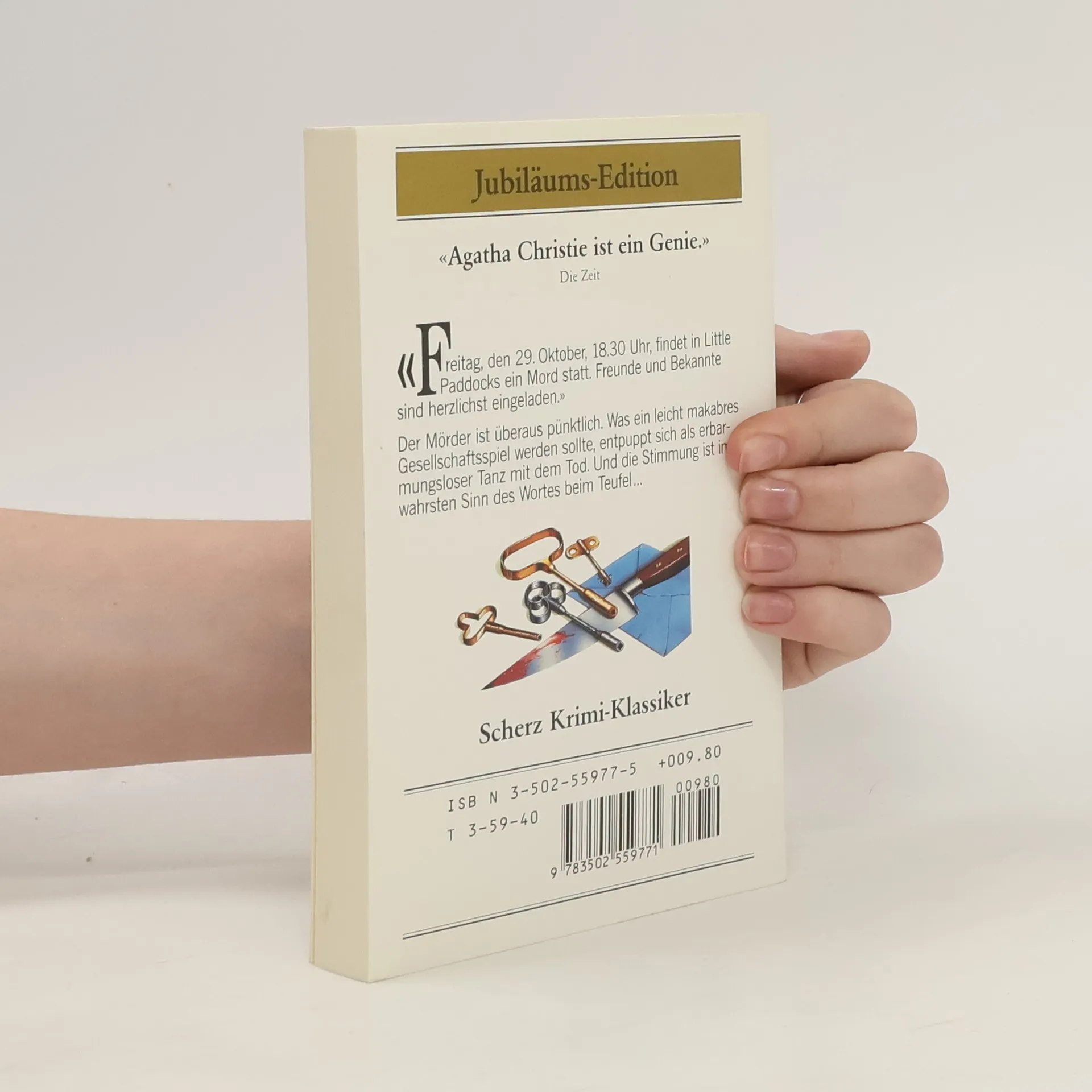 "Am Freitag, dem 29. Oktober, 18.30 Uhr, findet in Little Paddock ein Mord statt. Freunde und Bekannte sind herzlich eingeladen." Schlagartig gehen alle Lichter aus, Schüsse fallen, und was alle für einen Scherz und ein Gesellschaftsspiel hielten, wird zu einem eiskalten und berechnenden Mord . . . (Verlagsangabe)