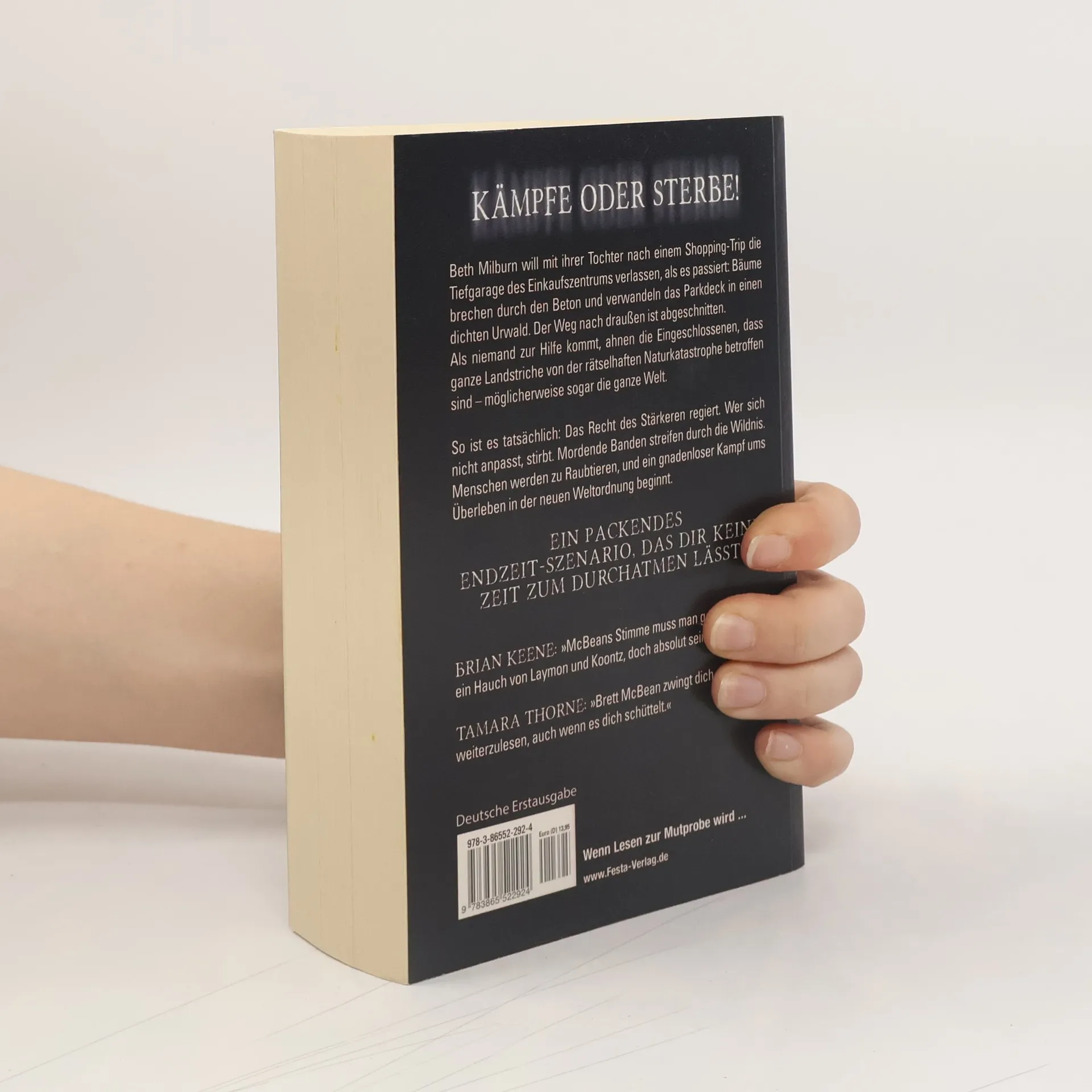Kämpfe oder sterbe! Beth Milburn will mit ihrer Tochter nach einem Shopping- Trip die Tiefgarage des Einkaufszentrums verlassen, als es passiert: Bäume brechen durch den Beton und verwandeln das Parkdeck in einen dichten Urwald. Der Weg nach draußen ist abgeschnitten. Als niemand zur Hilfe kommt, ahnen die Eingeschlossenen, dass ganze Landstriche von der rätselhaften Naturkatastrophe betroffen sind möglicherweise sogar die ganze Welt. So ist es tatsächlich: Das Recht des Stärkeren regiert. Wer sich nicht anpasst, stirbt. Mordende Banden streifen durch die Wildnis. Menschen werden zu Raubtieren, und ein gnadenloser Kampf ums Überleben in der neuen Weltordnung beginnt. Ein packendes Endzeit- Szenario, das dir keine Zeit zum Durchatmen lässt!