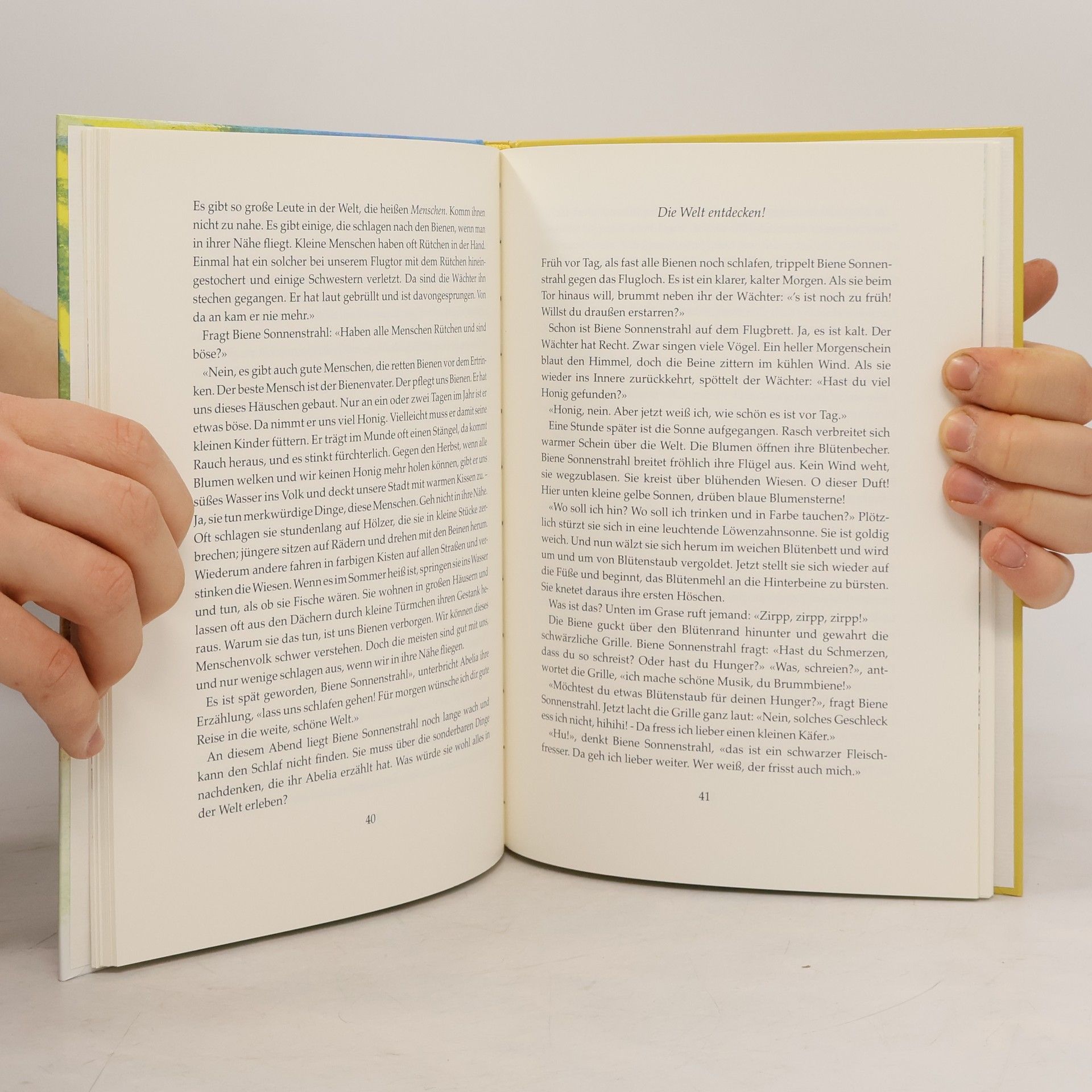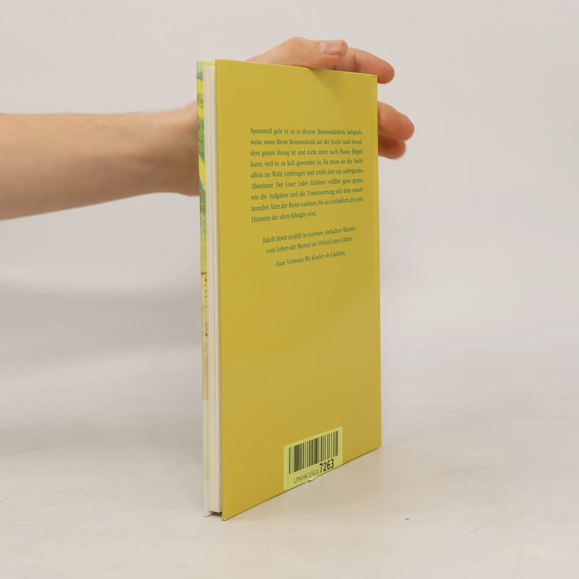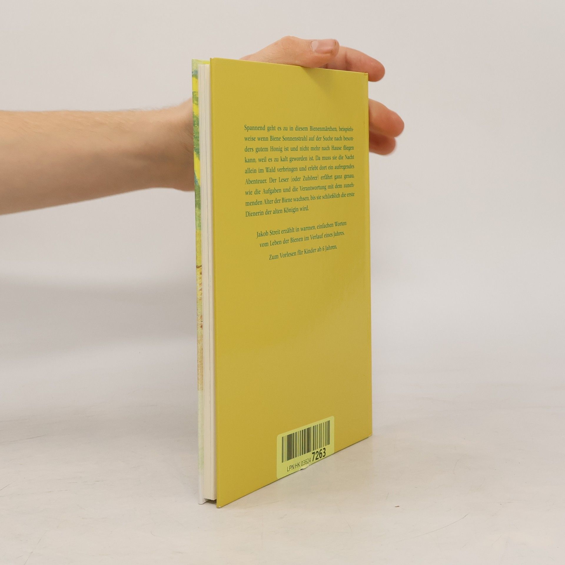Durch die Abenteuer der kleinen Biene Sonnenstrahl, die mit dem ersten Sonnenstrahl des Tages auf die Welt kommt, werden Kinder mit dem Leben der Bienen bekannt. Sie lernen die Königin, die ihre Eier legt, und die strengen Wächter der Bienenstadt kennen; auch die Bienenschwestern Abelia und Sonja, die die Biene Sonnenstrahl großziehen und ihr zeigen, wie sie den Blütenstaub von den Sammlerinnen abstreifen kann und ihn in die Kammern einfüllt, auch wie sie eine Wiege für die Bienen-Prinzessin vorbereiten soll. Wenn sie größer wird und allein fortfliegen darf, um selber Blütenstaub zu sammeln, begegnet Biene Sonnenstrahl Feinden in Wald und Wiese: Wespen, Ameisen, Hornissen und dem Bienenschnäpfer, aber auch Freunden wie Glühwurm und Heuschrecke oder gar dem Menschen. In den liebevoll erzählten Episoden weiß Jakob Streit manche Fakten aus dem Leben der Bienen einzuflechten, in dem Darstellungsstil, der dieser Alterstufe angemessen ist und bewusst die Mittel des Grotesken oder Komischen zu vermeiden. Gerade heute, wo unmittelbare Anschauung den Kindern fehlt, ist diese erste Bekanntschaft mit der geheimnisvollen Welt der Bienen so nötig. Die Illustrationen von Verena Knobel mit ihren frischen Farben sind e.i.ne schöne Ergänzung des Textes.