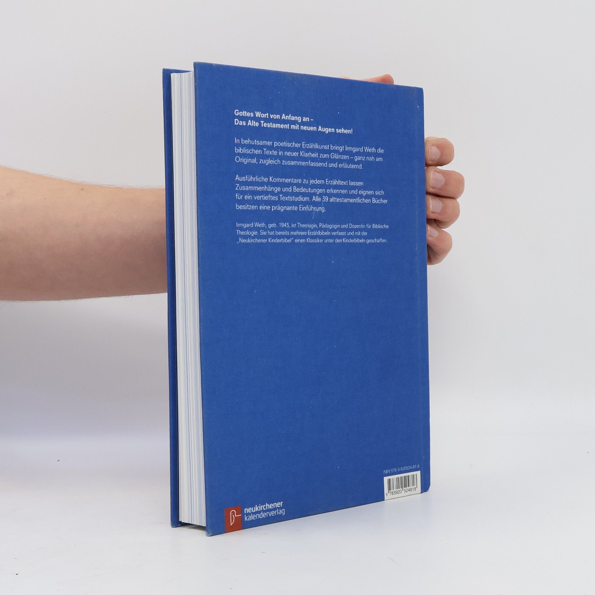 Mit der "Neukirchener Kinderbibel" und "Neukirchener Erzählbibel" hat Irmgard Wetheine ganze Generation junger Menschen mit der Guten Nachricht bekannt gemacht. Nun lädt sie erwachsene Leser zu einer völlig neuen und überraschenden Entdeckungsreise durch das Alte Testament ein.Die behutsame, poetische Erzählkunst der Bibel expertin Irmgard Weth bringt alle Bücher des Alten Testaments in neuer Klar heit zum Glänzen. Dabei erzählt sie in ihrer unnachahmlichen Art - ganz nah am Original, zugleich immer wieder zusammenfassend und erläuternd. So laden die Texte auch zum lautenLesen ein und geben dem Sprachfl uss des biblischen Originals Raum. Sie eignen sich damit sowohl für den persönlichen als auch für den öffentlichen, z. B. gottesdienstlichen Gebrauch.Vor jedes biblische Buch stellt sie eine prägnante und anschauliche Einführung; ausführliche Kommentare stellen jeden Erzähltext nicht nur in den historischen Kontext, sondern in den großen Zusammenhang der Geschichte Gottes und die befreiende Botschaft seiner Liebe, die durch alle menschlichen Widerstände hindurch bricht.