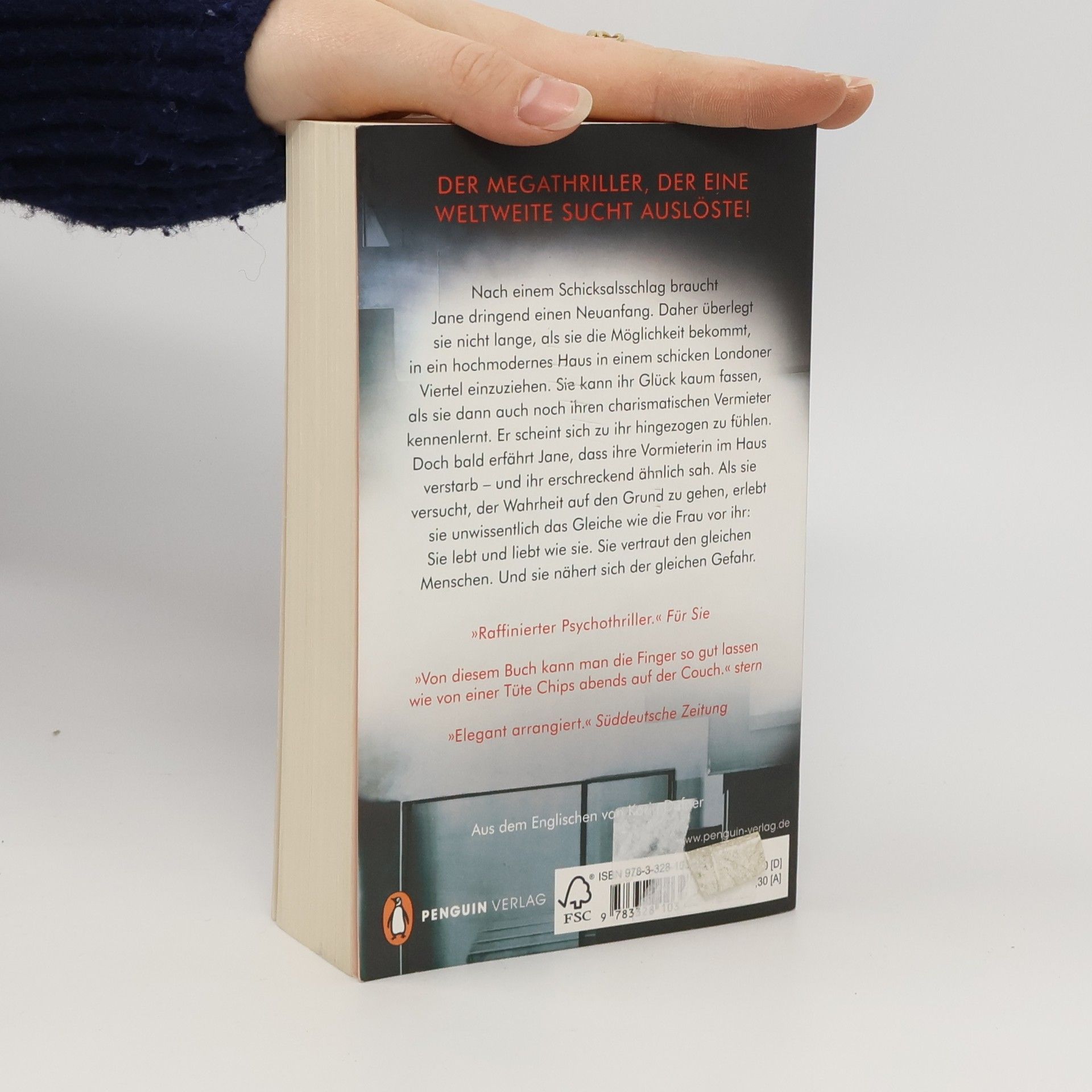 »Manchmal habe ich das Gefühl, dass ich nicht allein bin. Manchmal glaube ich, dass dieses Haus mich beobachtet. Etwas muss hier geschehen sein. Etwas Schreckliches.« Nach einem Schicksalsschlag braucht Jane dringend einen Neuanfang. Daher überlegt sie nicht lange, als sie die Möglichkeit bekommt, in ein hochmodernes Haus in einem schicken Londoner Viertel einzuziehen. Sie kann ihr Glück kaum fassen, als sie dann auch noch den charismatischen Besitzer und Architekten des Hauses kennenlernt. Er scheint sich zu ihr hingezogen zu fühlen. Doch bald erfährt Jane, dass ihre Vormieterin im Haus verstarb – und ihr erschreckend ähnlich sah. Als sie versucht, der Wahrheit auf den Grund zu gehen, erlebt sie unwissentlich das Gleiche wie die Frau vor ihr: Sie lebt und liebt wie sie. Sie vertraut den gleichen Menschen. Und sie nähert sich der gleichen Gefahr.