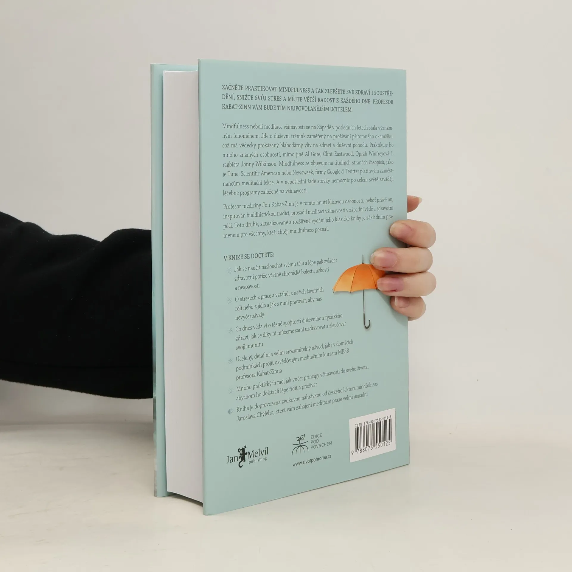 Začněte praktikovat mindfulness a zlepšete své zdraví, soustředění a radost ze života. Profesor Jon Kabat-Zinn, přední odborník v oblasti mindfulness, představuje techniky, které pomáhají čelit stresu, nemoci a bolesti. Meditace, dříve považována za esoterickou, se v posledních letech stala součástí západní kultury, včetně medicíny, psychologie, školství a dokonce i vrcholového sportu. Mnoho známých osobností, jako Bill Clinton či Richard Gere, dnes meditaci aktivně praktikuje. Dlouhodobé výzkumy, včetně studií s využitím magnetické rezonance, ukazují pozitivní vliv mindfulness na tělesné a duševní zdraví, přičemž účinnost těchto programů je srovnatelná s antidepresivy. V posledních 15 letech se počet vědeckých článků na toto téma exponenciálně zvyšuje. Jon Kabat-Zinn přivedl mindfulness do mainstreamu medicíny a v roce 1979 vytvořil program MBSR, který pomohl více než 20 000 pacientům. Tento program je považován za excelentní příklad participativní medicíny, kde se pacient aktivně podílí na prevenci nemocí a zlepšení zdraví. Kniha, která vyšla poprvé před 25 lety, byla nedávno revidována a doplněna o nové poznatky. Obsahuje praktické postupy založené na Kabat-Zinnově programu MBSR a zvukový materiál, který podporuje práci s vlastní myslí.