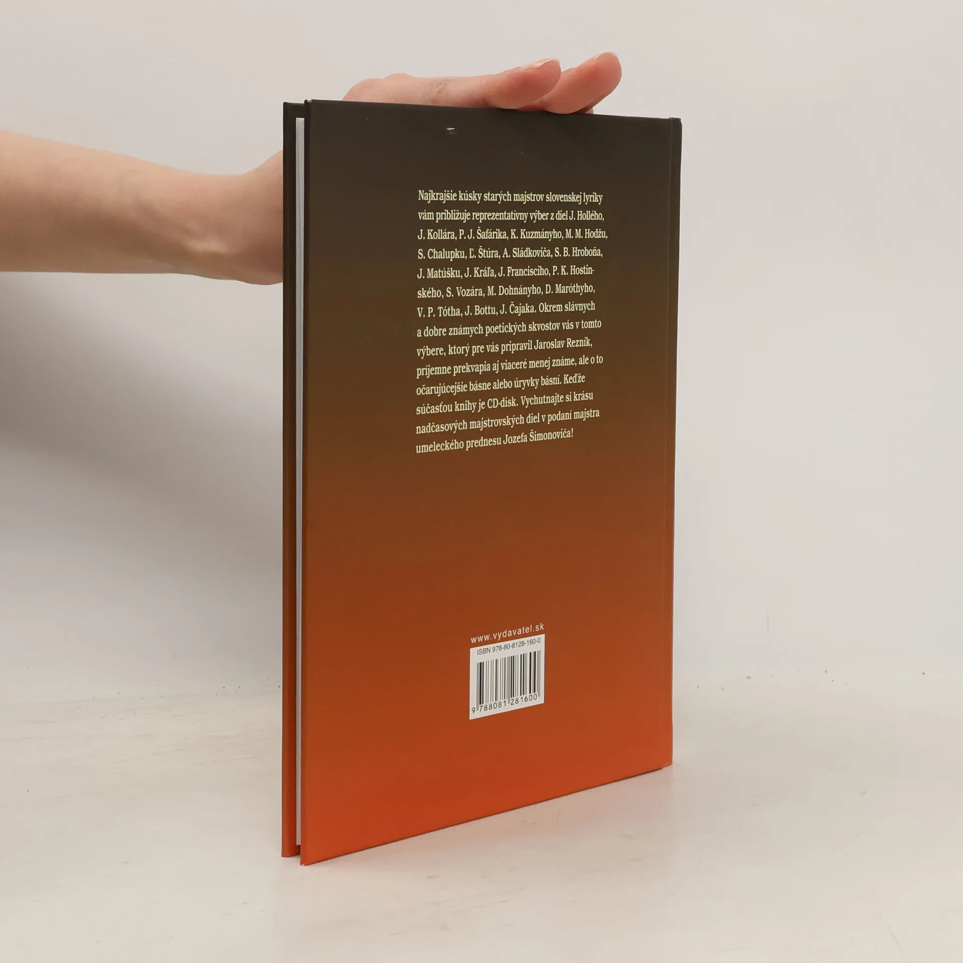 Najkrajšie kúsky starých majstrov slovenskej lyriky vám približuje reprezentatívny výber z diel J. Hollého, J. Kollára, P. J. Šafárika, K. Kuzmányho, M. M. Hodžu, S. Chalupku, Ľ. Štúra, A. Sládkoviča, S. B. Hroboňa, J. Matúšku, J. Kráľa, J. Francisciho, P. K. Hostinského, S. Vozára, M. Dohnányho, D. Maróthyho, V. P. Tótha, J. Bottu, J. Čajaka.