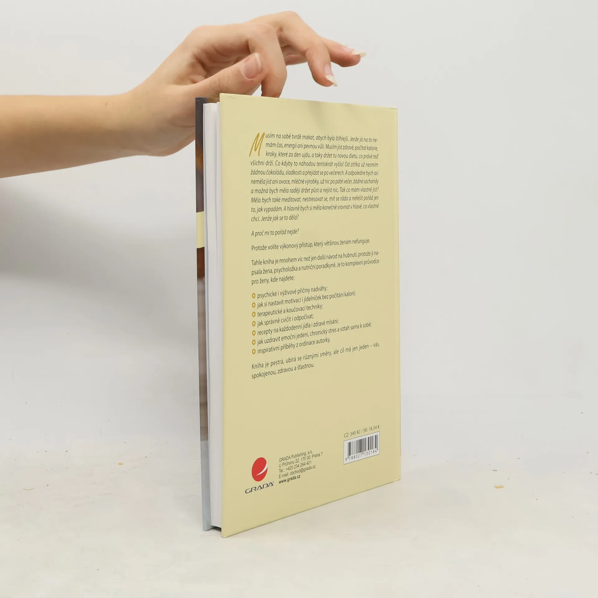 Tahle kniha je mnohem víc než jen další návod na hubnutí, protože ji napsala žena, psycholožka a nutriční poradkyně. Je to komplexní průvodce pro ženy, kde najdete: psychické i výživové příčiny nadváhy; jak si nastavit motivaci i jídelníček bez počítání kalorií; terapeutické a koučovací techniky; jak správně cvičit i odpočívat; recepty na každodenní jídla i zdravé mlsání; jak uzdravit emoční jedení, chronický stres a vztah sama k sobě; inspirativní příběhy z ordinace autorky. Kniha je pestrá, ubírá se různými směry, ale cíl má jen jeden – vás, spokojenou, zdravou a šťastnou.