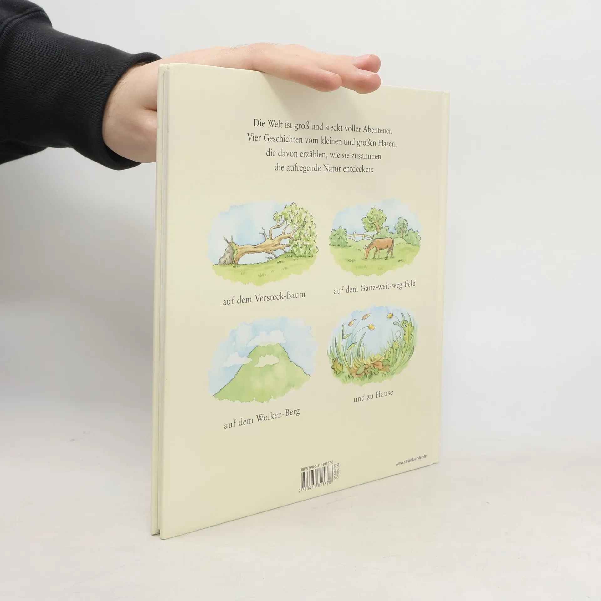 Die Welt ist groß und steckt voller Abenteuer. Vier neue Geschichten vom kleinen und vom großen Hasen, die davon erzählen, wie sie zusammen die aufregende Natur entdecken: auf dem Versteck-Baum, dem Ganz-weit-weg-Feld, dem Wolken-Berg und zu Hause.