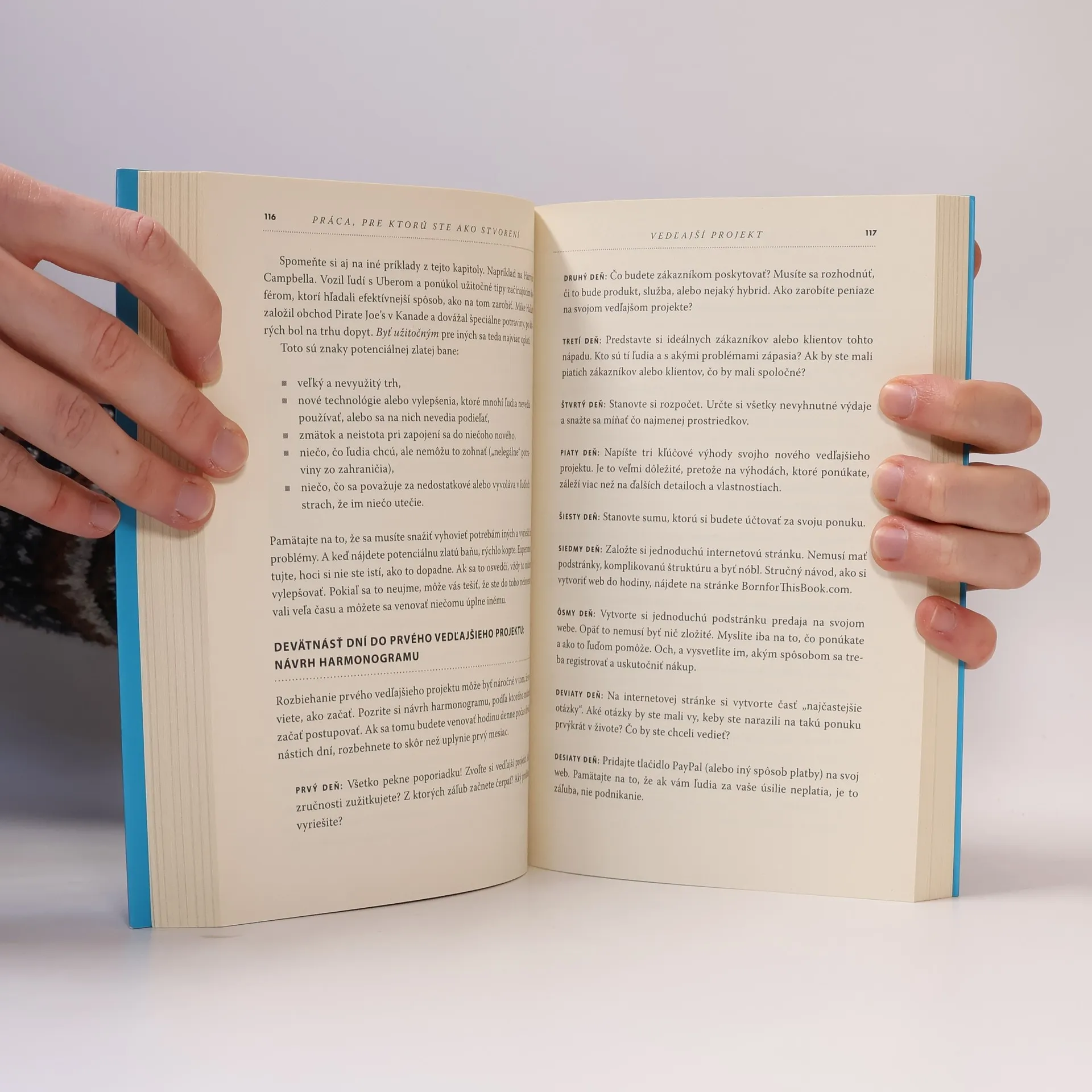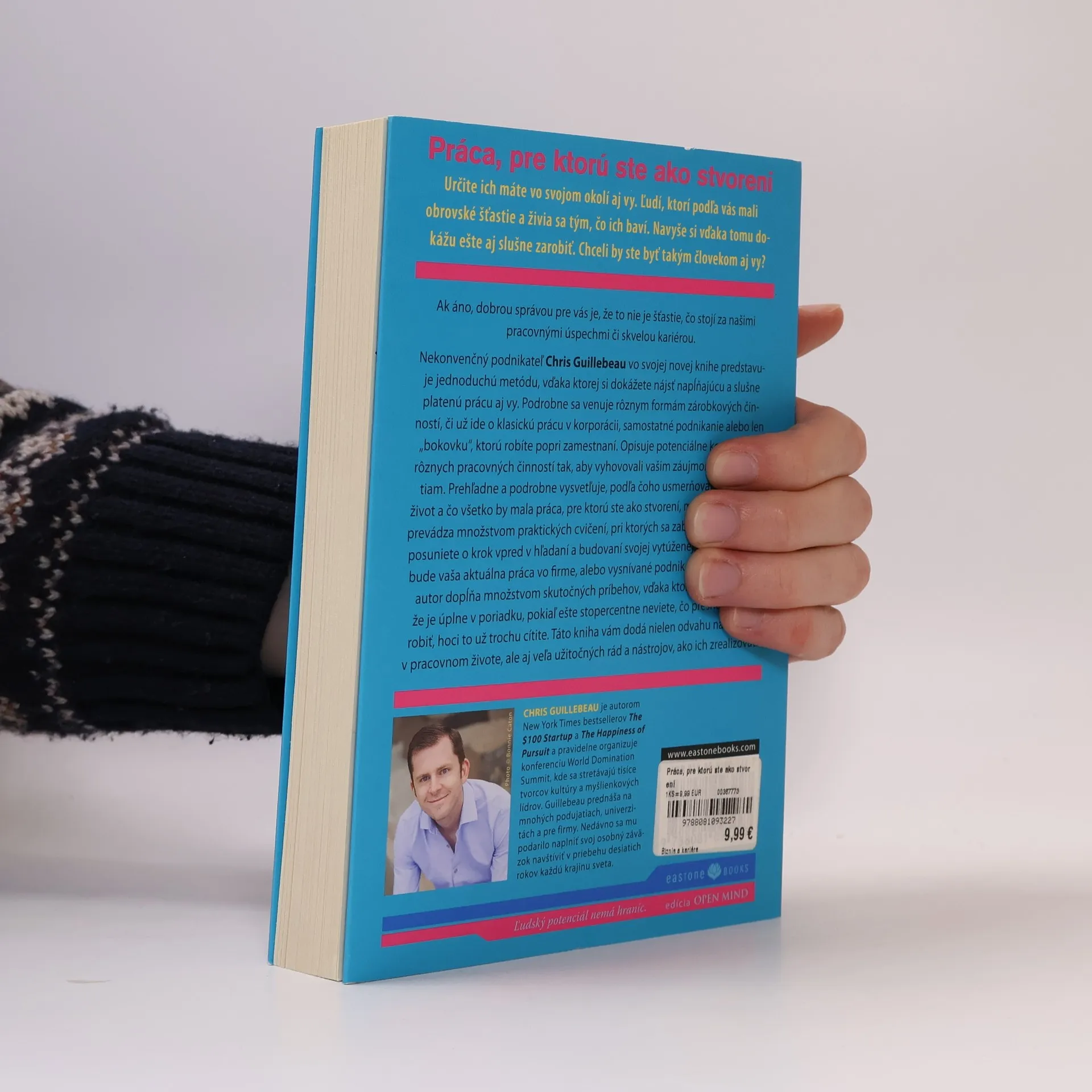 Ako začať robiť to, čo vás naozaj baví Nekonvenčný podnikateľ Chris Guillebeau vo svojej novej knihe predstavuje jednoduchú metódu, vďaka ktorej si dokážete nájsť napĺňajúcu a slušne platenú prácu aj vy. Podrobne sa venuje rôznym formám zárobkových činností, či už ide o klasickú prácu v korporácii, samostatné podnikanie alebo len „bokovku“, ktorú robíte popri zamestnaní. Opisuje potenciálne kombinácie rôznych pracovných činností tak, aby vyhovovali vašim záujmom aj možnostiam. Prehľadne a podrobne vysvetľuje, podľa čoho usmerňovať pracovný život a čo všetko by mala práca, pre ktorú ste ako stvorení, mať. Táto kniha vám dodá nielen odvahu na zmeny v pracovnom živote, ale aj veľa užitočných rád a nástrojov, ako ich zrealizovať.